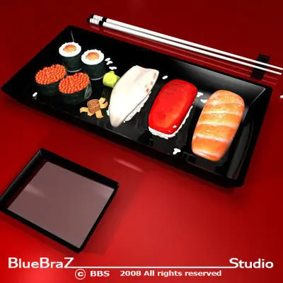 5 types of sushi food with all material and textures included.polygonalpolygon 79807vertices 80582