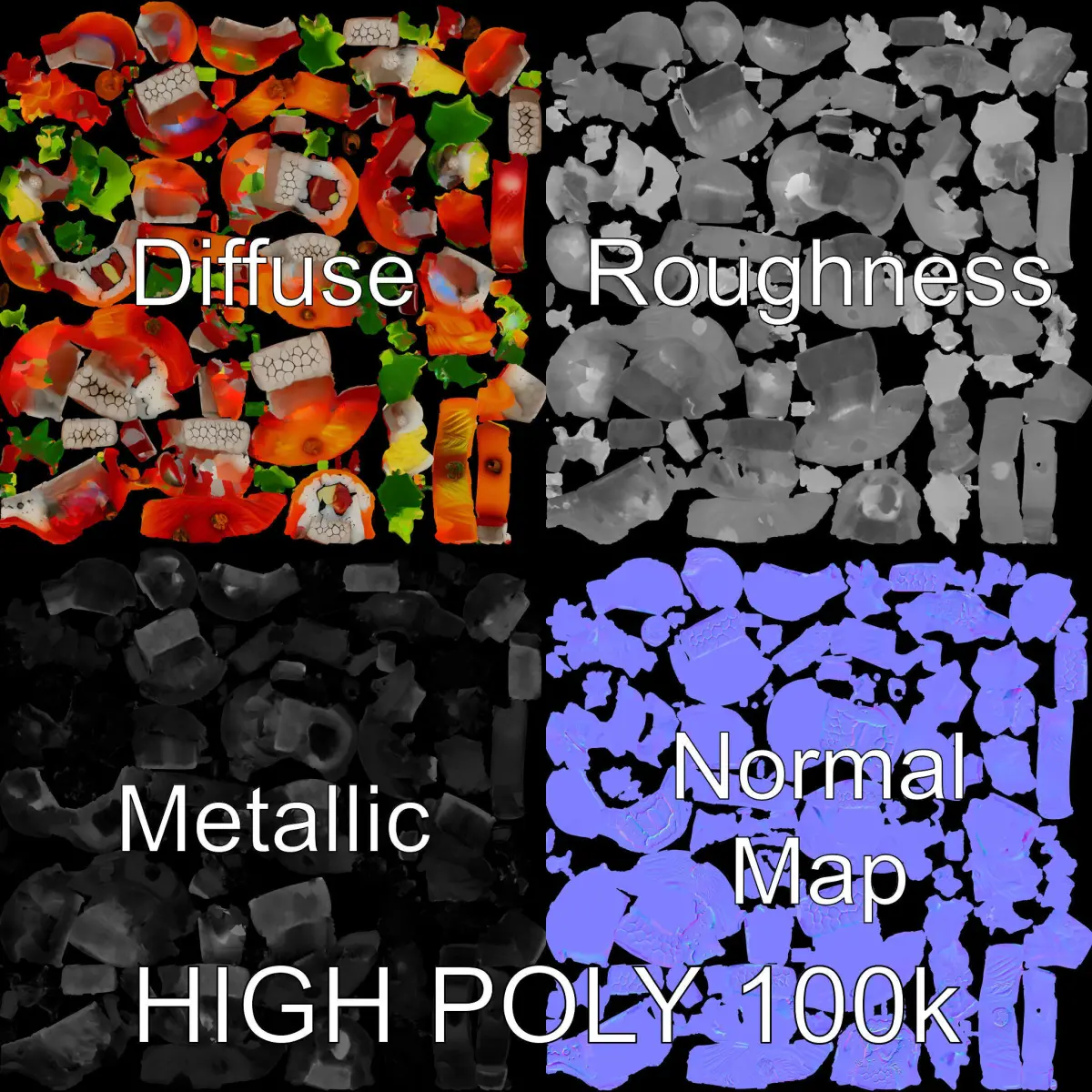 This sushi platter 3D model offers three levels of detail for versatile applications: low-poly for mobile apps, middle-poly for game environments, and high-poly for production rendering. Its realistic textures and accurate unwrapped UVs make it ideal for showcasing culinary art in virtual kitchens, game scenes, or interactive presentations. The model utilizes PBR, Diffuse, NormalMap, and reflection/roughness/metallic textures, ensuring compatibility with modern rendering engines like 3ds Max, Maya, and game engines like Unity and Unreal. All textures are 4096x4096 in size. The first image is the reference used for creating the 3D model. It is important to carefully evaluate the quality of the model by examining the preview images that display the topology and polygonal mesh. These previews (WIRE and WEB 3D Preview) clearly demonstrate how accurately the model matches the original reference and how well the geometry has been executed. Feel free to like and comment if you appreciate the model!