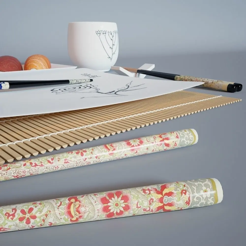 HomeCatalogSushi Set almond blossom hanging on wall 3D model