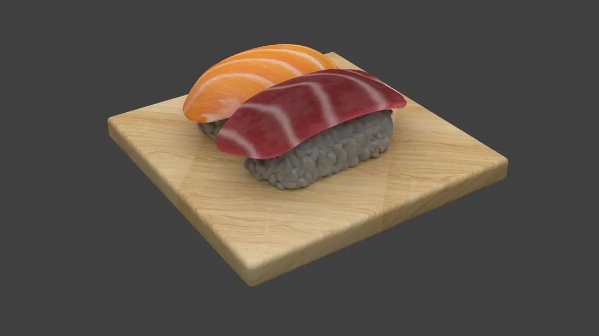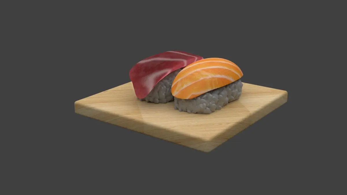HomeCatalogSushi Set on wooden cutting board 3D model