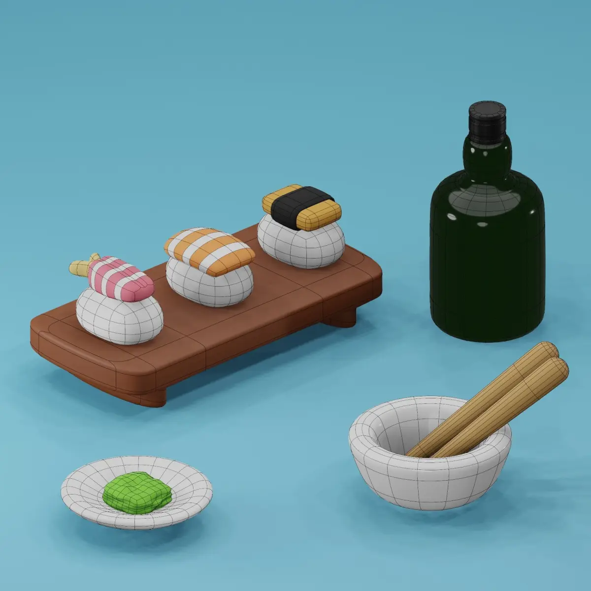 Sushi Sets for everyone who need to see another side of beautiful world. So, This world dense of many creativity, imagination and Digital art. This sushi is represent me to tell everyone that if you have no idea what you want to eat you will try my sushi which I created by my creative and fullfillment with Wasabi and acolhol to make you join with this meal.