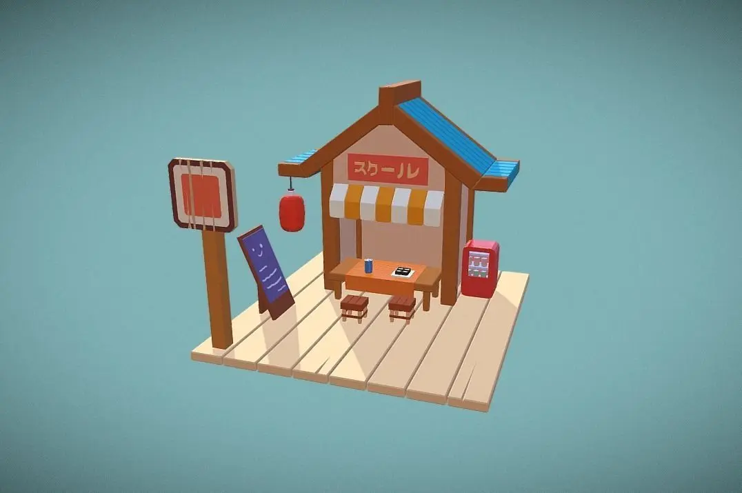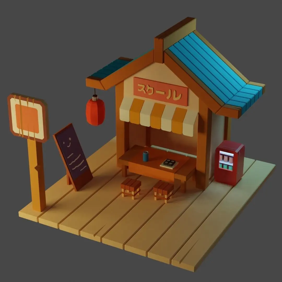 Here comes a cute lowpoly sushi shop model, visitors come by and eat dinner with asian friends! model is simply colored and decorated with a mix of culture and modern brands.