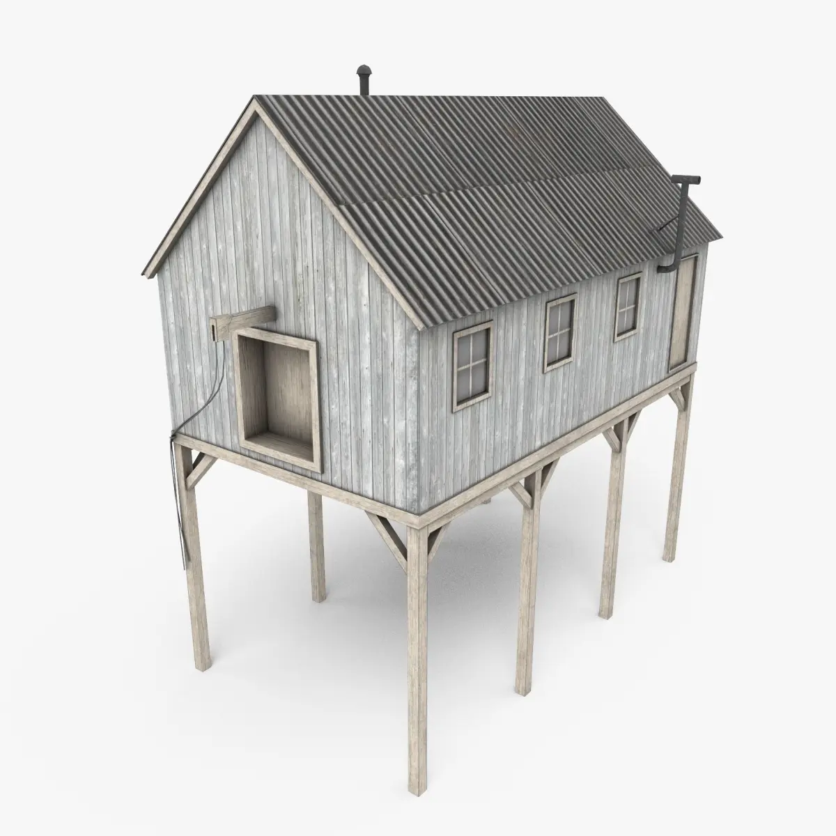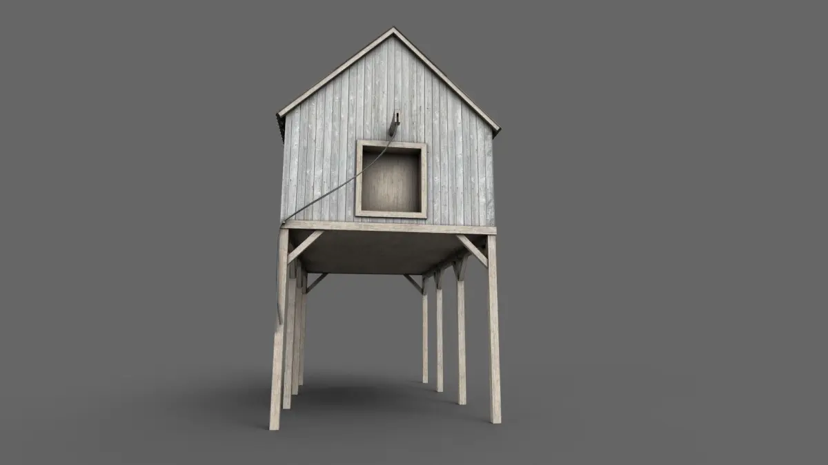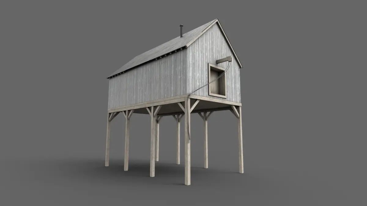 This is a game ready low poly model of a suspended Barn
