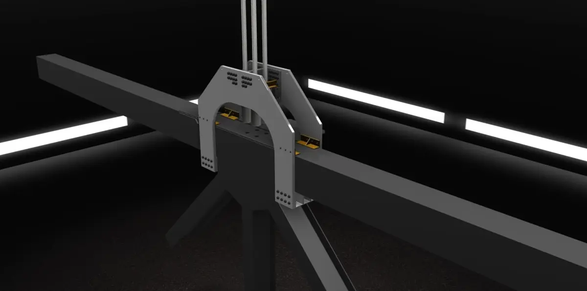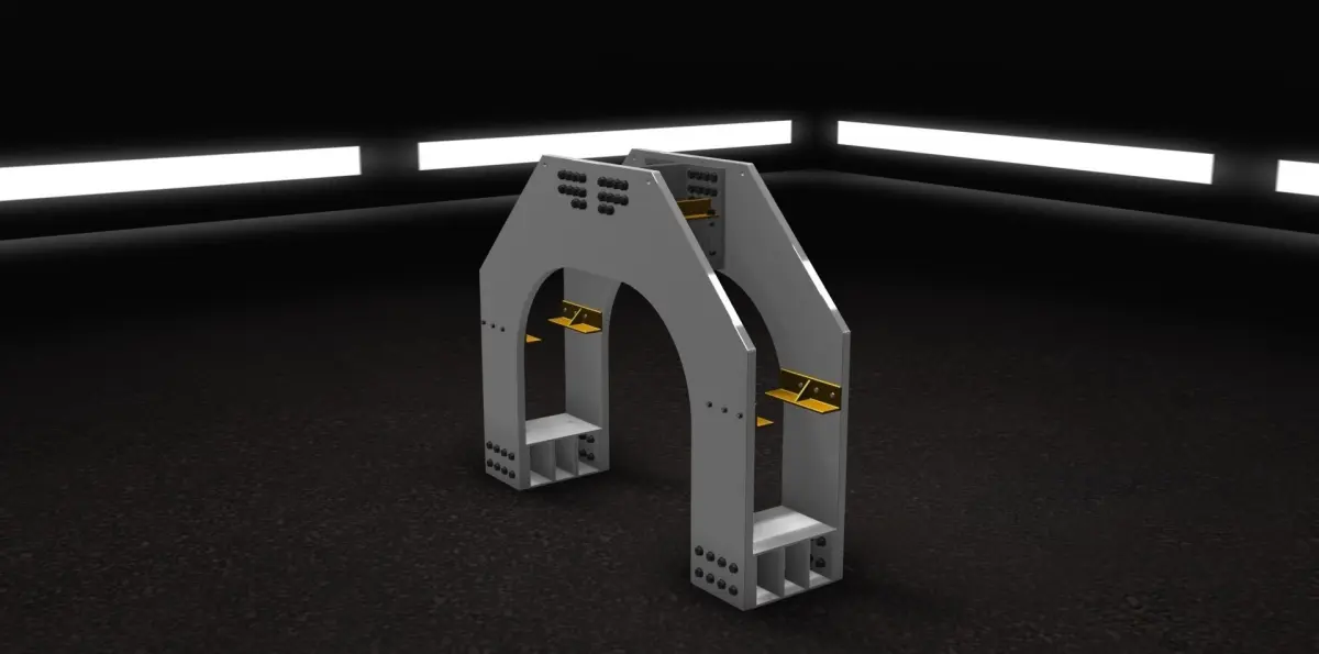 This is a temporary connection structure designed to support the weight of a suspension bridge’s deck. It is used when the main connections of the suspension cables must be replaced or maintained. It's calculated to resist 200 tons of weight.