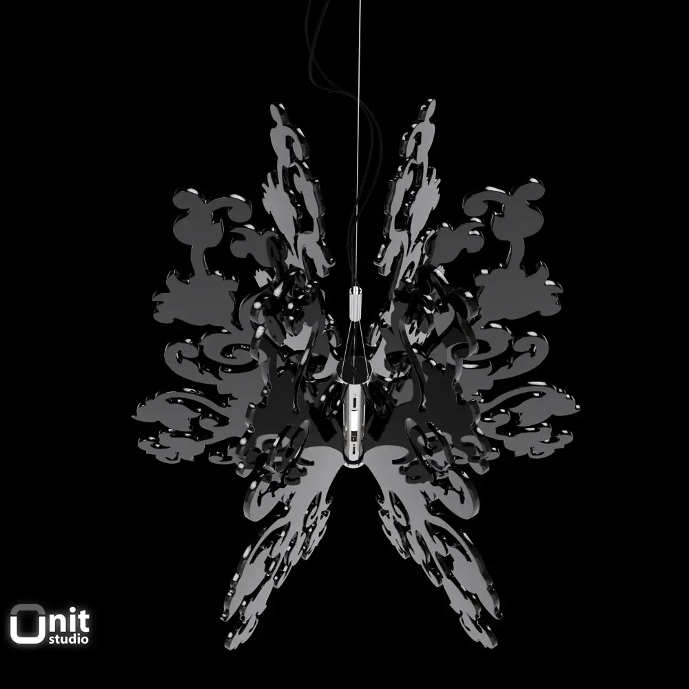 Anastacha suspension lamp by Terzani, made of laser-cut plexiglas planes with a traditional shape.Design Bruno Rainaldi
