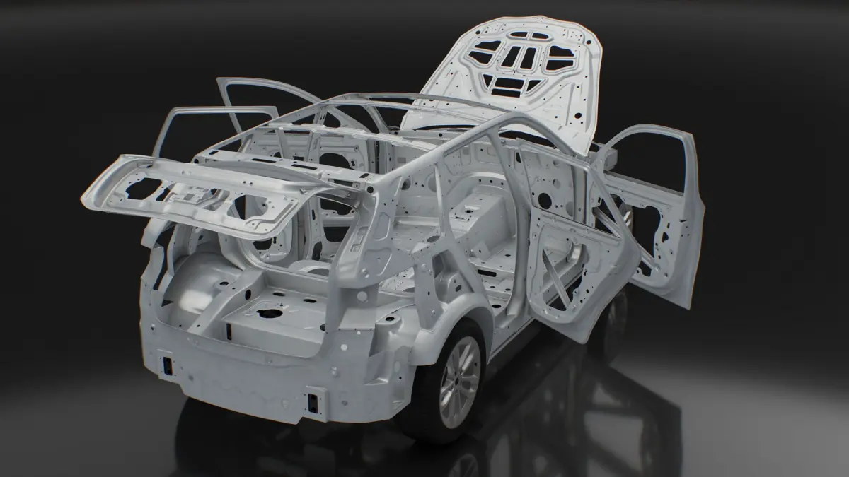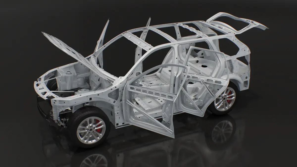 An SUV's frame structure with a chassis is a robust foundation combining a rigid steel frame and a mounted chassis. This design supports the body, drivetrain, and suspension, ensuring durability and stability. It excels in off-road conditions, offering high load-bearing capacity and resistance to torsional forces while providing a comfortable and secure ride.