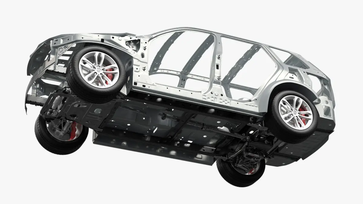 SUV Chassis and Frame is a 3d model of the structural foundation of an SUV, showcasing the chassis and frame components that support and shape the vehicle.