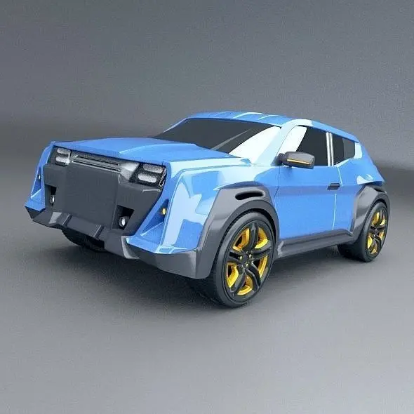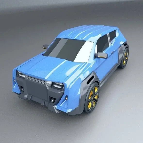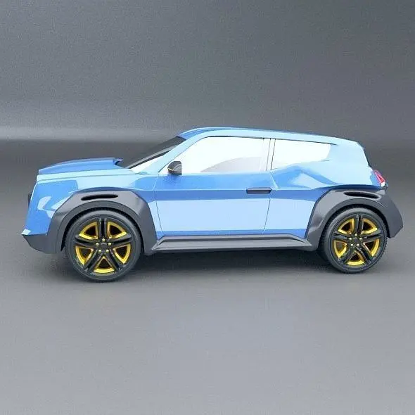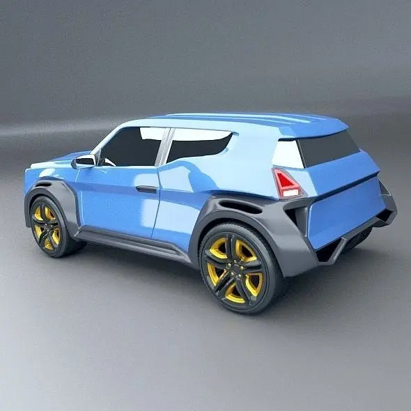 My new concept vehicle,but this time I've created SUV or maybe crossover vehicle concept.On social networks some said it is the mixture of old Renault 4L and Renault Kwid,maybe it is,even it was not my intention.Rear view reminds me on scifi helmet from Star Wars.Now about the software used and other details.For 3d modeling I've used Blender3d 2.79 version,realistic rendering created with cycles rendering engine.Tire treads created from bunch of polygons to get more realistic look of this details.They took most of the polygons and vertices.,as you can see it on my wireframe preview images.There are no interior,engine and no suspension parts,just the exterior.Most of the objects detached,jointed but you can unlink it except doors.If you use blender file you can delete subsurf(sub-D) modifier and use it as lowpoly or you could change what you don't like on my concept.I believe this cool concept of mine will be interesting item for your project.Enjoy my work.