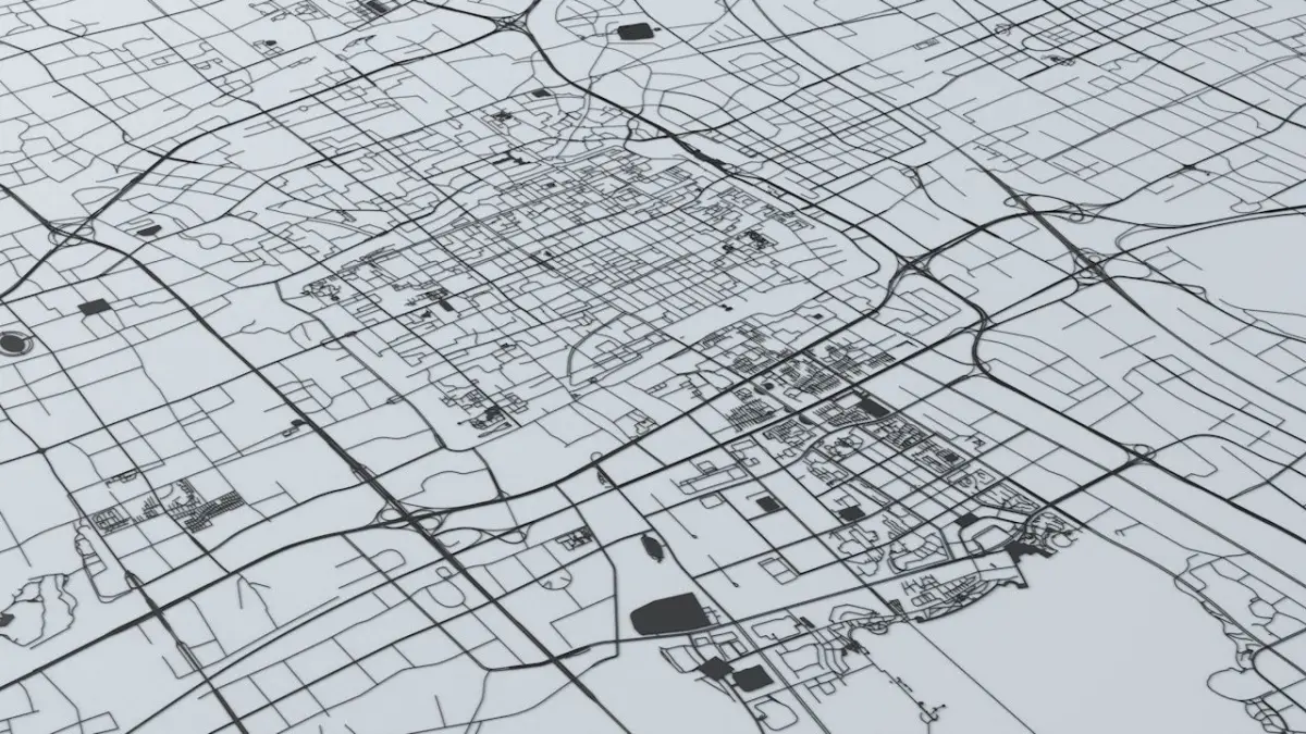 - the model is positioned on a flat surface (road network is on the “floor” - no elevation data included)