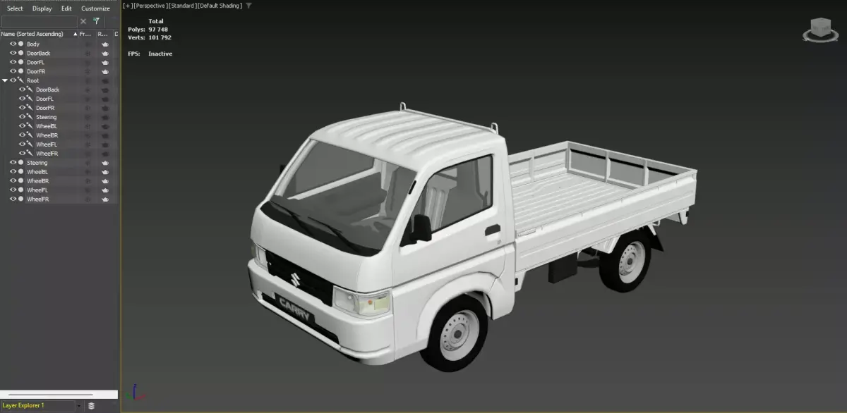 3d model of Suzuki Carry car created in real dimensions. It was created as low poly with turbosmooth adaptation. It can be used in low poly and high poly mode. Suitable for games, cinematics and various architectural projects.
