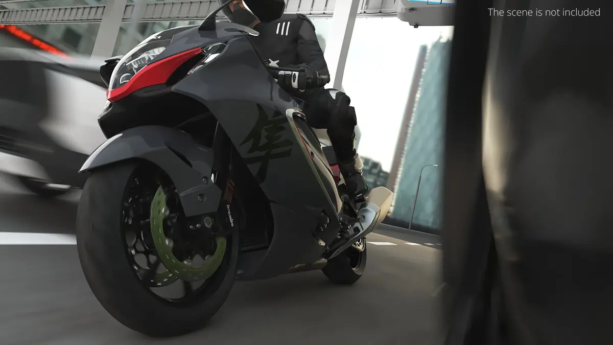 Suzuki Hayabusa GSX-1300R Inline-Four Sportbike Black Red Rigged is a high quality, photo real 3d model that will enhance detail and realism to any of your rendering projects. The model has a fully textured, detailed design that allows for close-up renders, and was originally modeled in 3ds Max 2020 and rendered with V-Ray. Renders have no postprocessing!