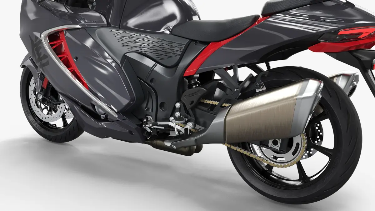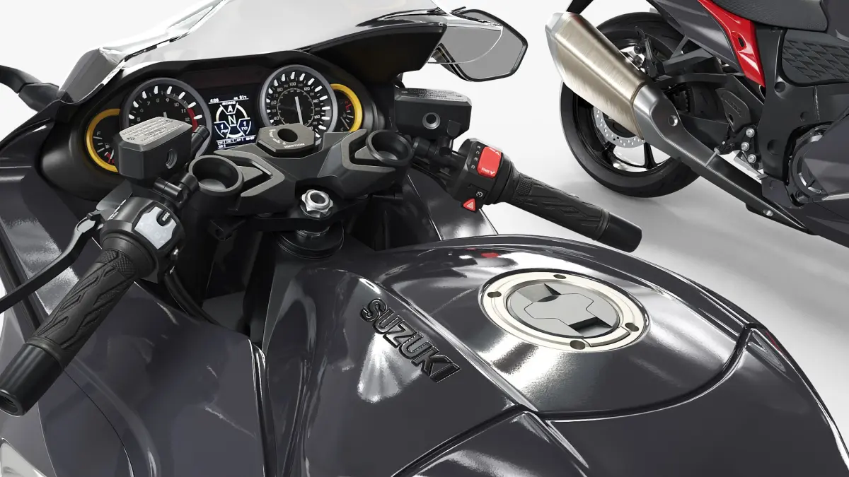 Suzuki Hayabusa Sportbike with Full Fairing and Red Trim Black Simplified is a high quality, photo real 3d model that will enhance detail and realism to any of your rendering projects. The model has a fully textured, detailed design that allows for close-up renders, and was originally modeled in 3ds Max 2020 and rendered with V-Ray. Renders have no postprocessing!