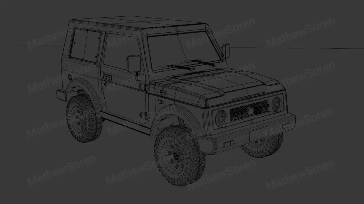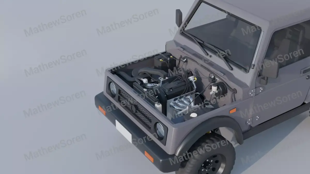 This 3D model represents a classic off-road vehicle inspired by the Suzuki Samurai SJ413, carefully designed to offer an exceptional level of detail.