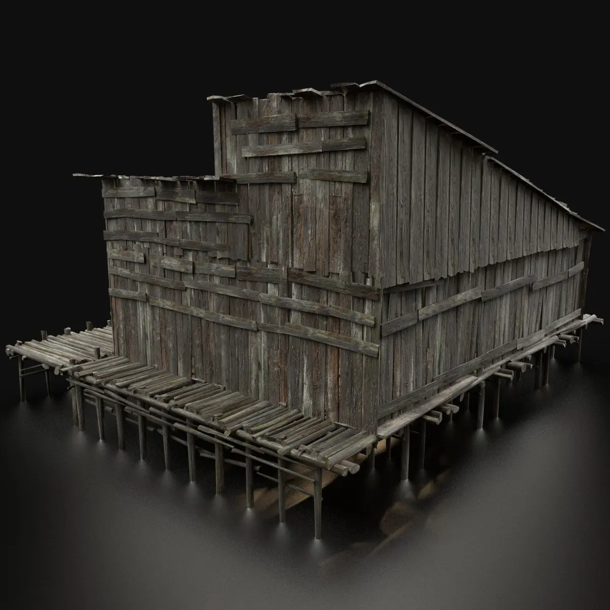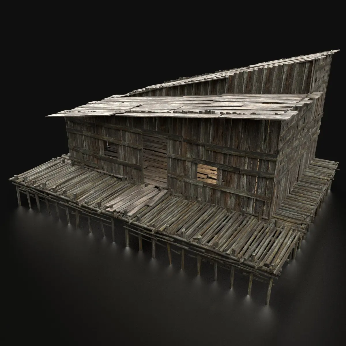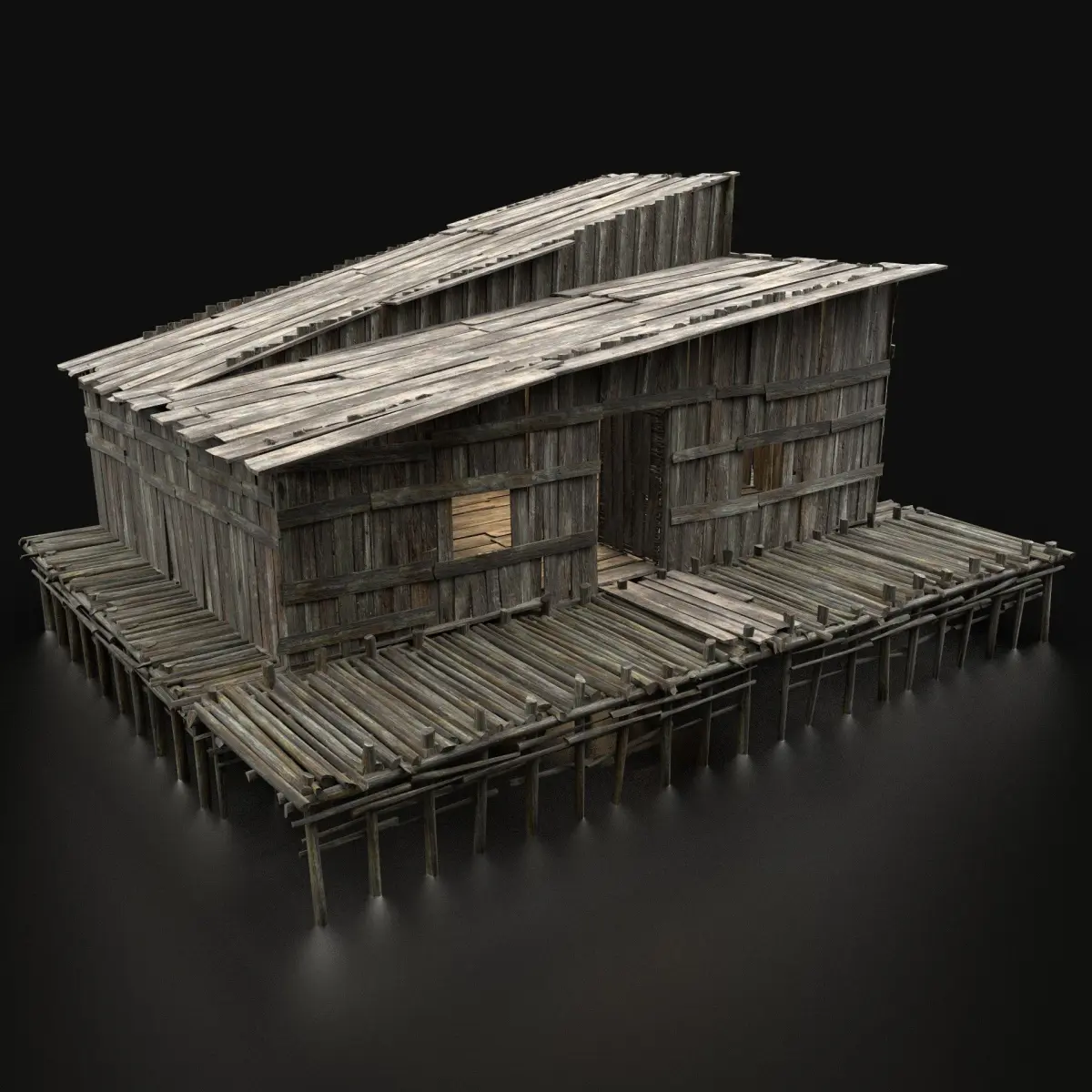 - 4 next gen, AAA quality, game-ready models of swamp wooden house.