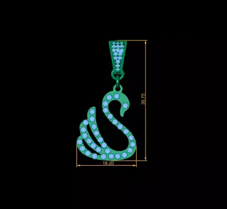 This stunning Swan Pendant is a beautifully designed 3D printable jewelry model featuring a graceful swan outline fully decorated with round stone settings. The wings and neck curve smoothly, creating a luxurious and elegant profile, while the bail is enhanced with micro-stone detailing for added sparkle.