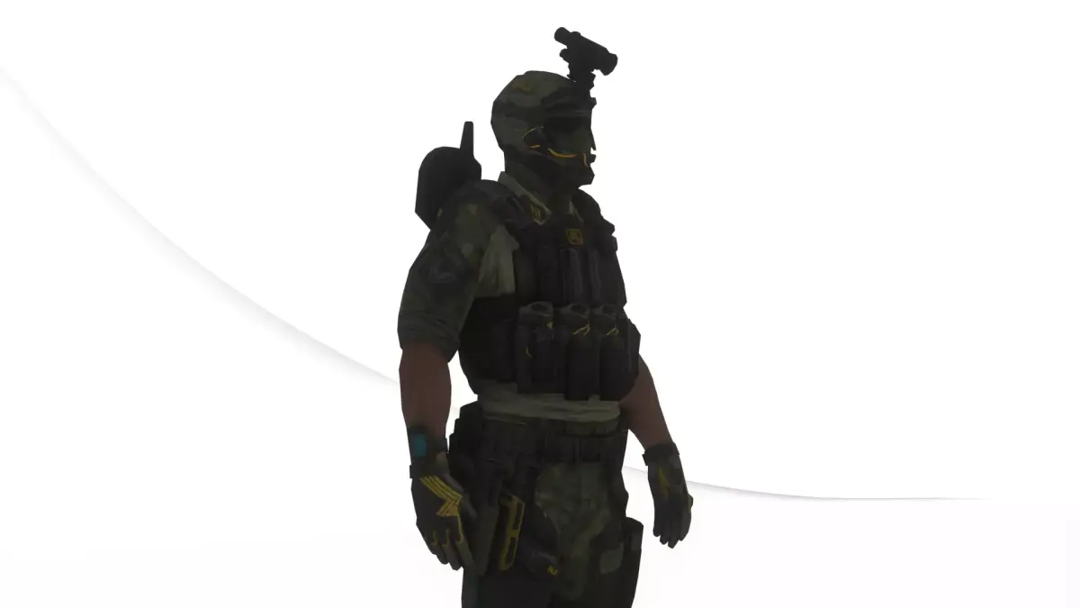A SWAT soldier equipped with modern body armor, helmet, and night vision attachments. The model is fully rigged and optimized for use in law enforcement simulations, tactical shooters, or 3D cinematics. Perfect for close-quarters combat or hostage rescue scenes