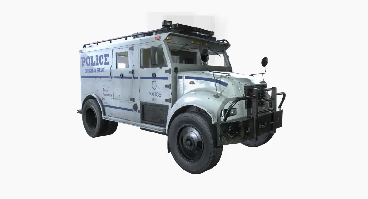 GAME READY SWAT Truck, similar to an NYPD Police Truck. Comes equipped with both interior and exterior textures. Multiple file types are also included in the .zip file so you can open this in just about any 3d program or game engine.Model is rigged with pivots in the right logical locations.