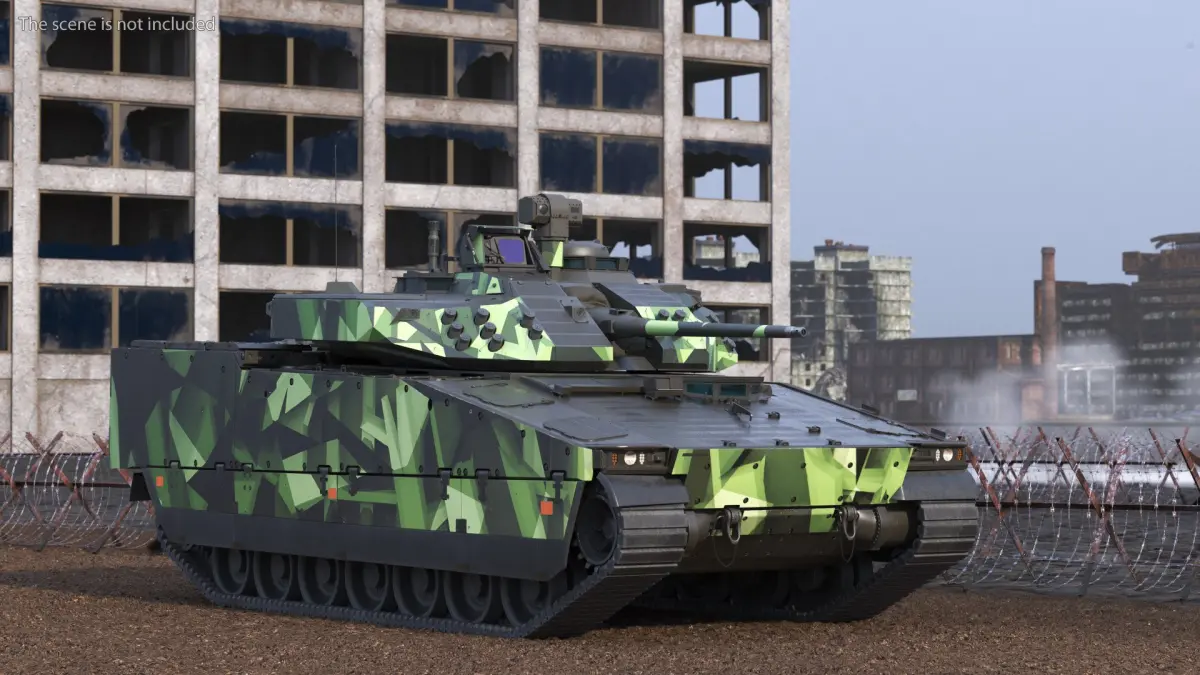 Swedish Battle Tank Strf 90 Mk IV is a 3d model of a modern infantry fighting vehicle designed for military operations in various terrains.