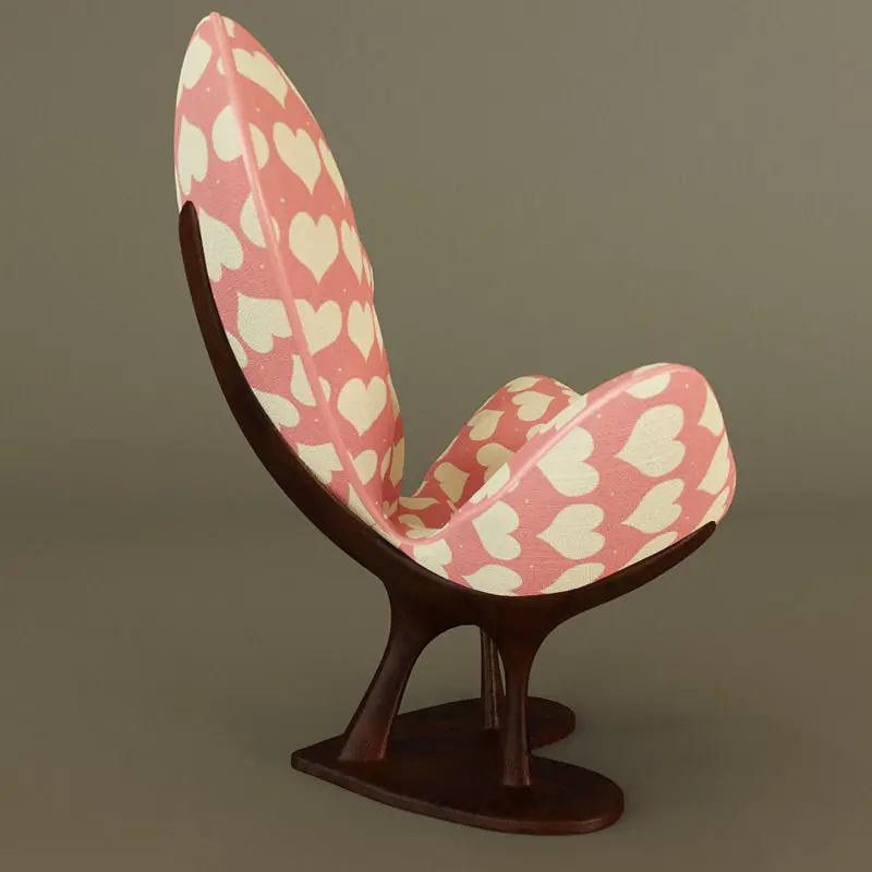 This is a chair that was made by request, specifically for the Valentine's Day holiday, but can be used anytime, in any scene. I call it the Sweet-Heart Chair (for obvious reasons), and was designed as a comfortable papasan-style lounge chair. It's design was actually inspired by the Danish highback Lobster Chair by Lund & Paarmann, and classic Eames Lounge Chair by the Herman Miller furniture company. I also designed a heart-shaped footstool to accompany it (ala the Eames chair), which can be loaded into the scene independantly. The chair object is currently comprised of two sub-components; the cushion and the wooden base, and weighs a modest 15,200 total polygons, all quads. The footstool contains 2,720 polygons total, again all quads. There are no triangles or ngons in these models. ***OBJ USERS, please refer to the instructions below for specific direction on how to load these objects into your scenes.