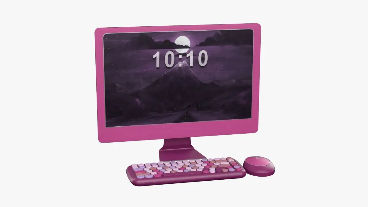 sweet pc computer monitor keyboard mouse set work colorful interior modern decoration room furniture