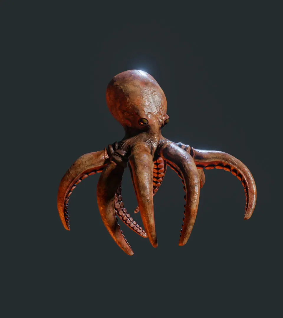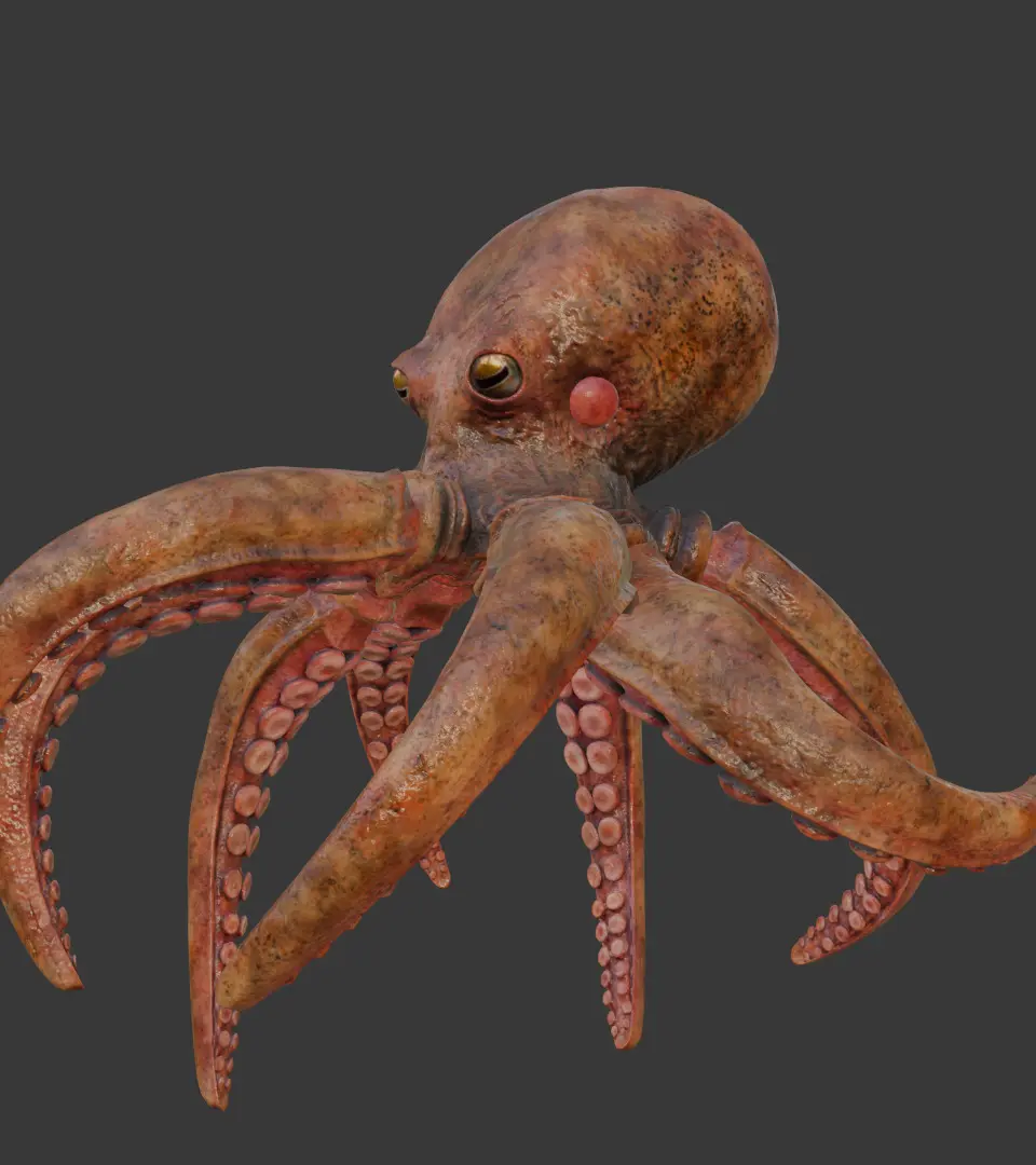 This is a fully textured, rigged, and animated 3D octopus model, optimized for game development. Created using Blender, ZBrush, and Substance Painterit features high-quality 8K textures for a detailed and realistic appearance.