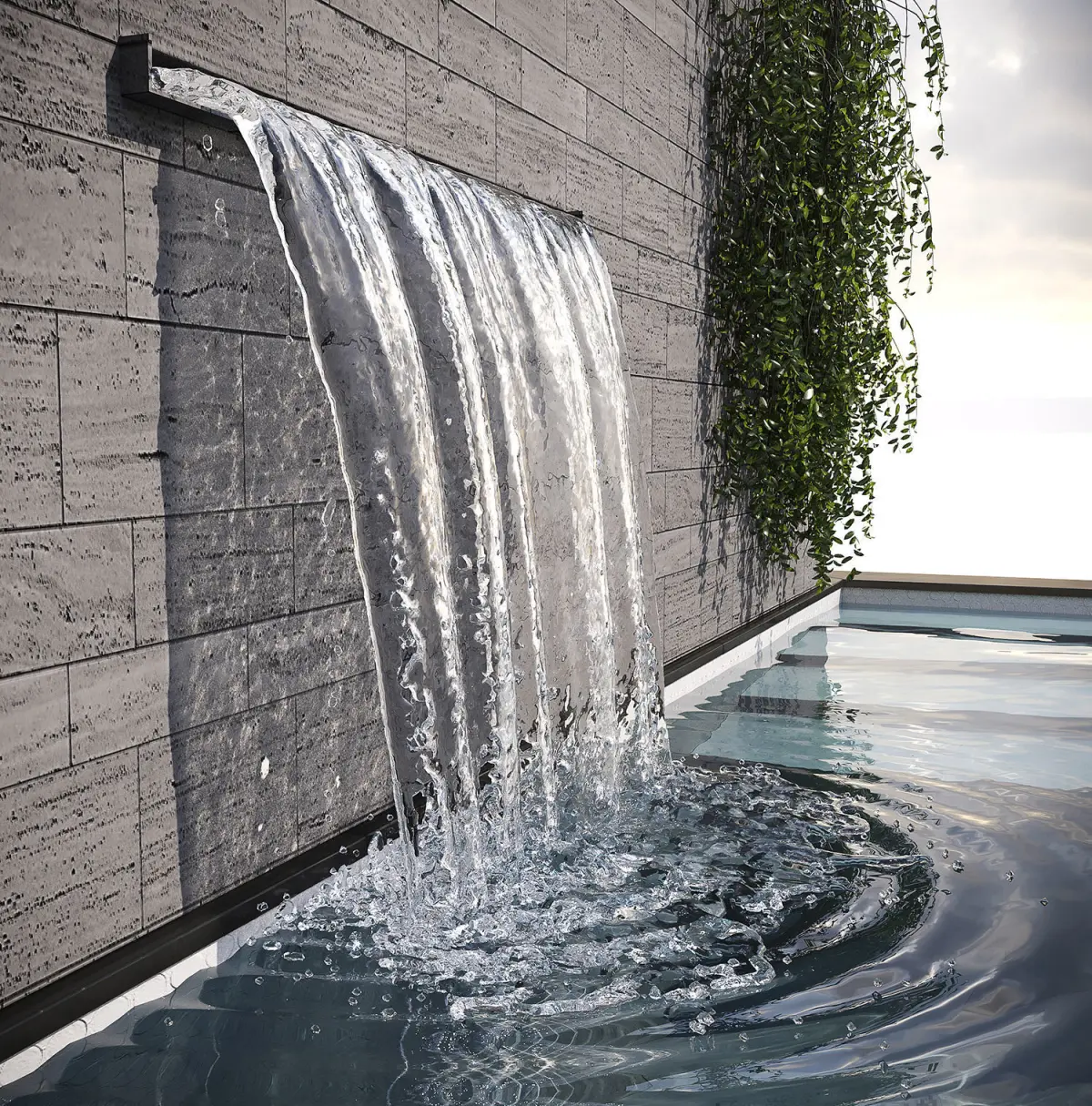 Swimming pool - Plants - Tree -Waterfall - Pool lounge - Grass