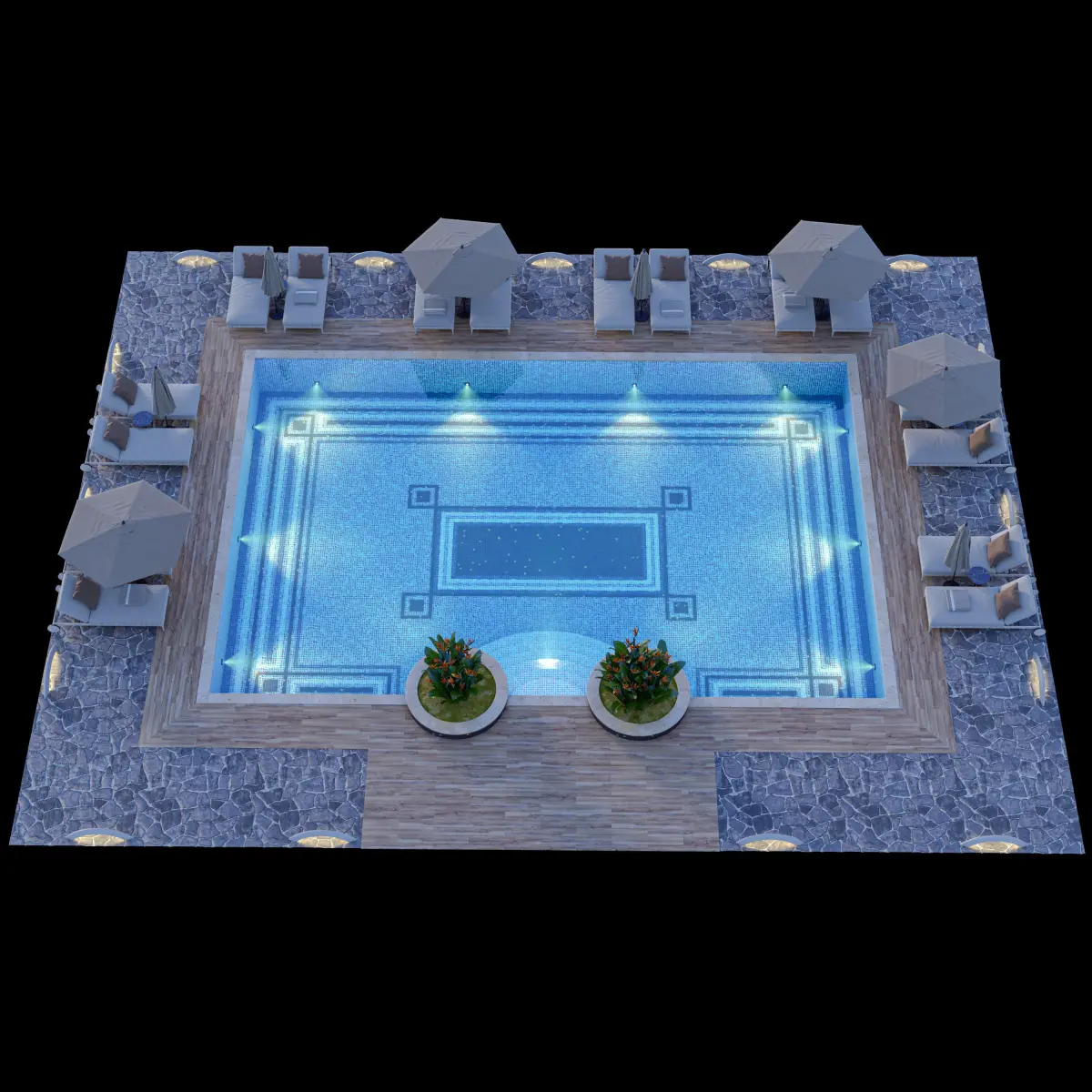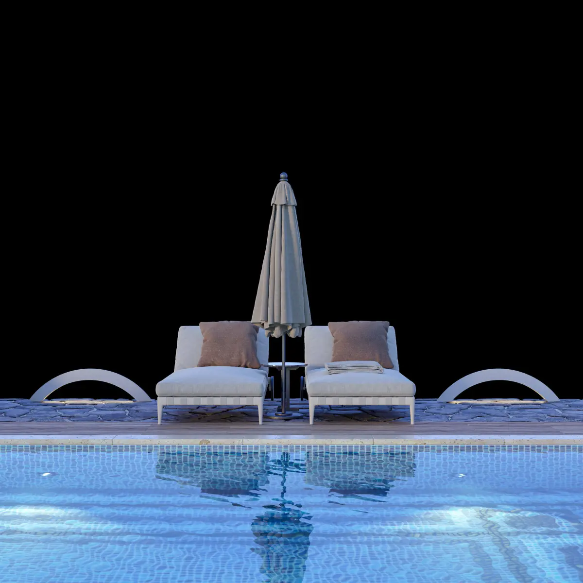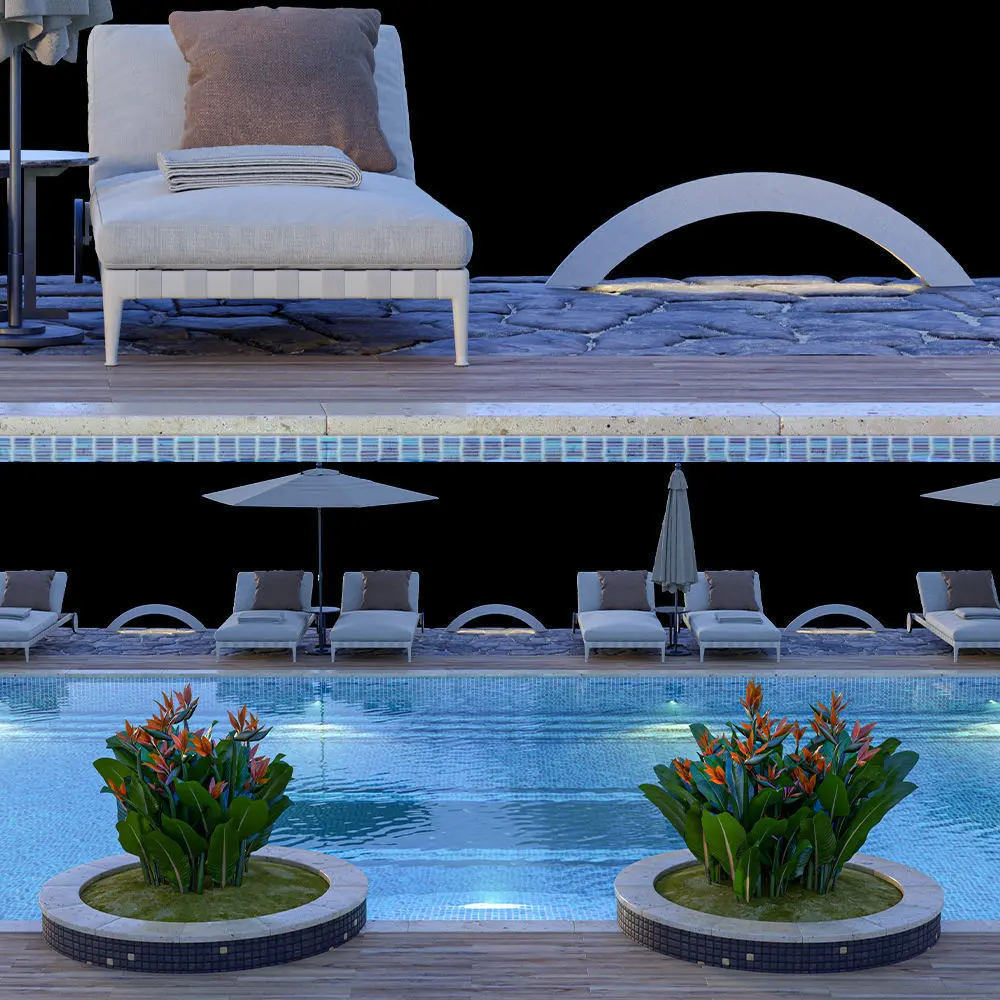 1200cm X 1800cm Swimming PoolFlexform Atlante chaise loungeCrate Barrel SunbrellaCoffee tableStone Floor