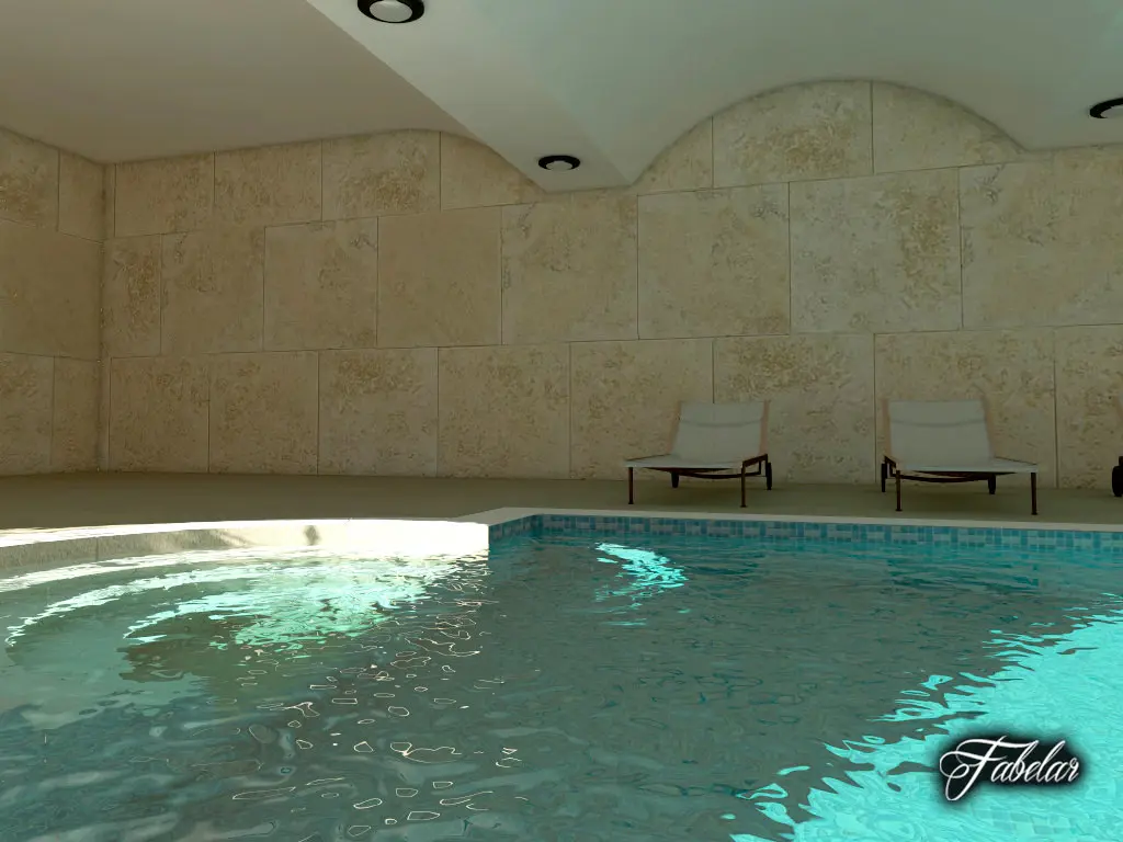 Indoor swimming pool 3D model, multiple formats. Lighting set, ready to render.