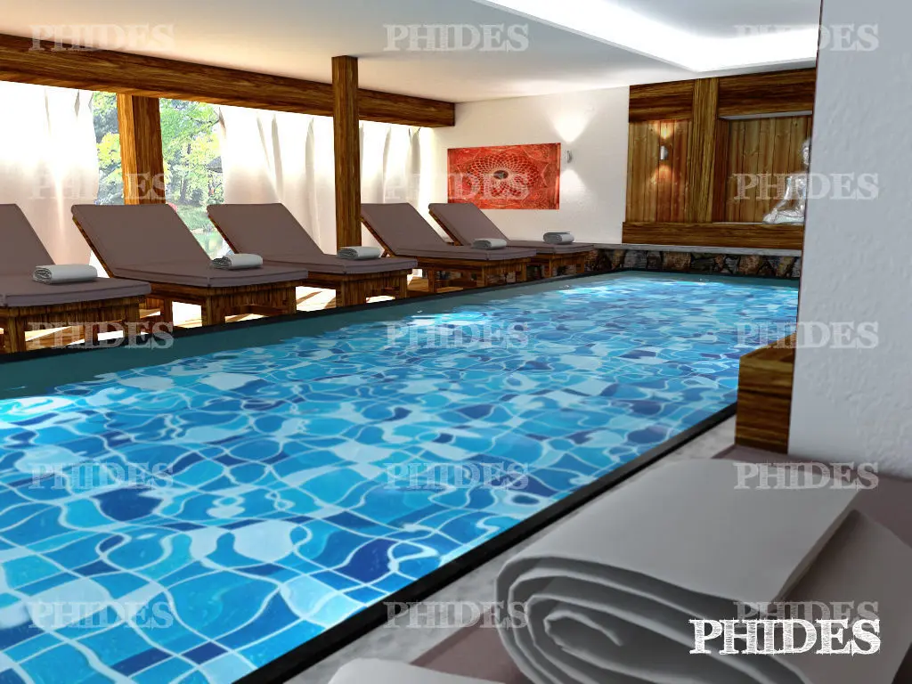 Indoor swimming pool 3D model, multiple formats. Lighting set, ready to render.