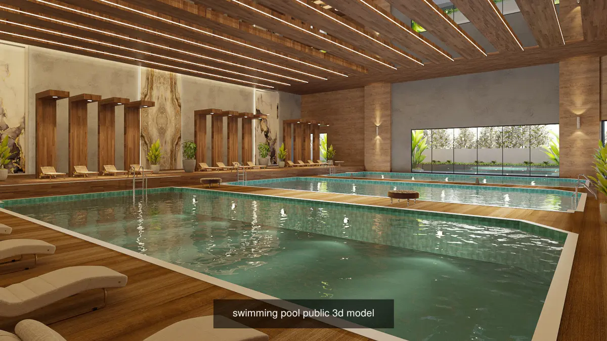 PUBLIC pool swimming Towel Realistic Interior Model Pool Sunbed Architecture Structure Water Shop