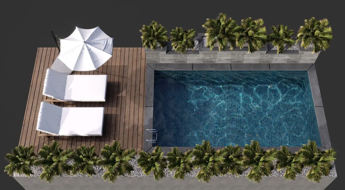 Swimming pool NO86recommend for good visualization of water you can active caustics in abbe in vray or caustics in corona setting