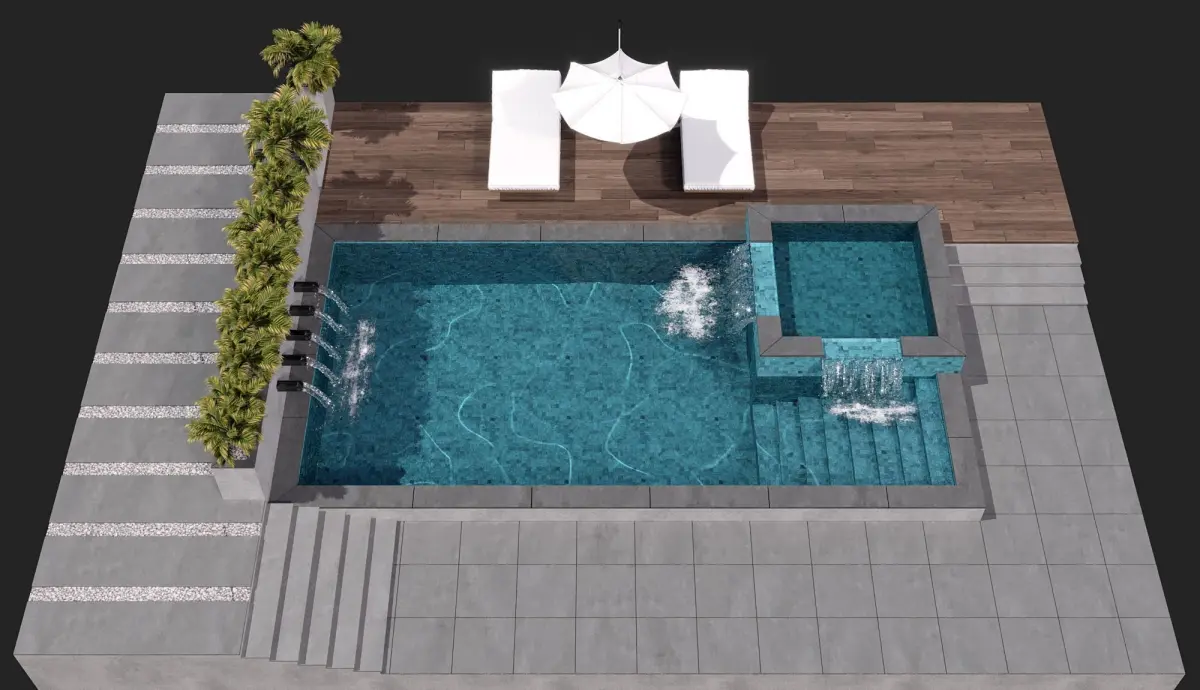 Swimming pool NO83recommend for good visualization of water you can active caustics in abbe in vray or caustics in corona setting