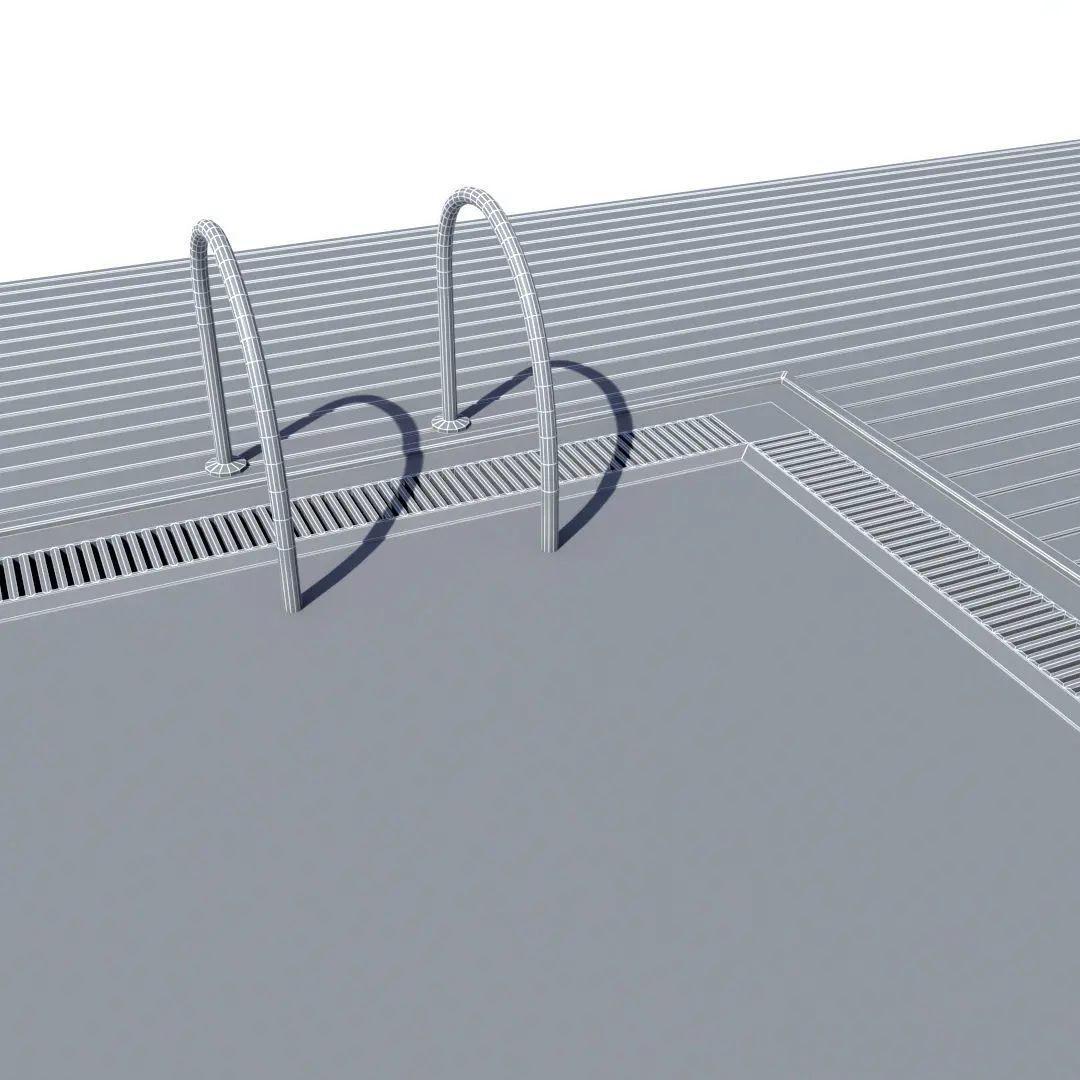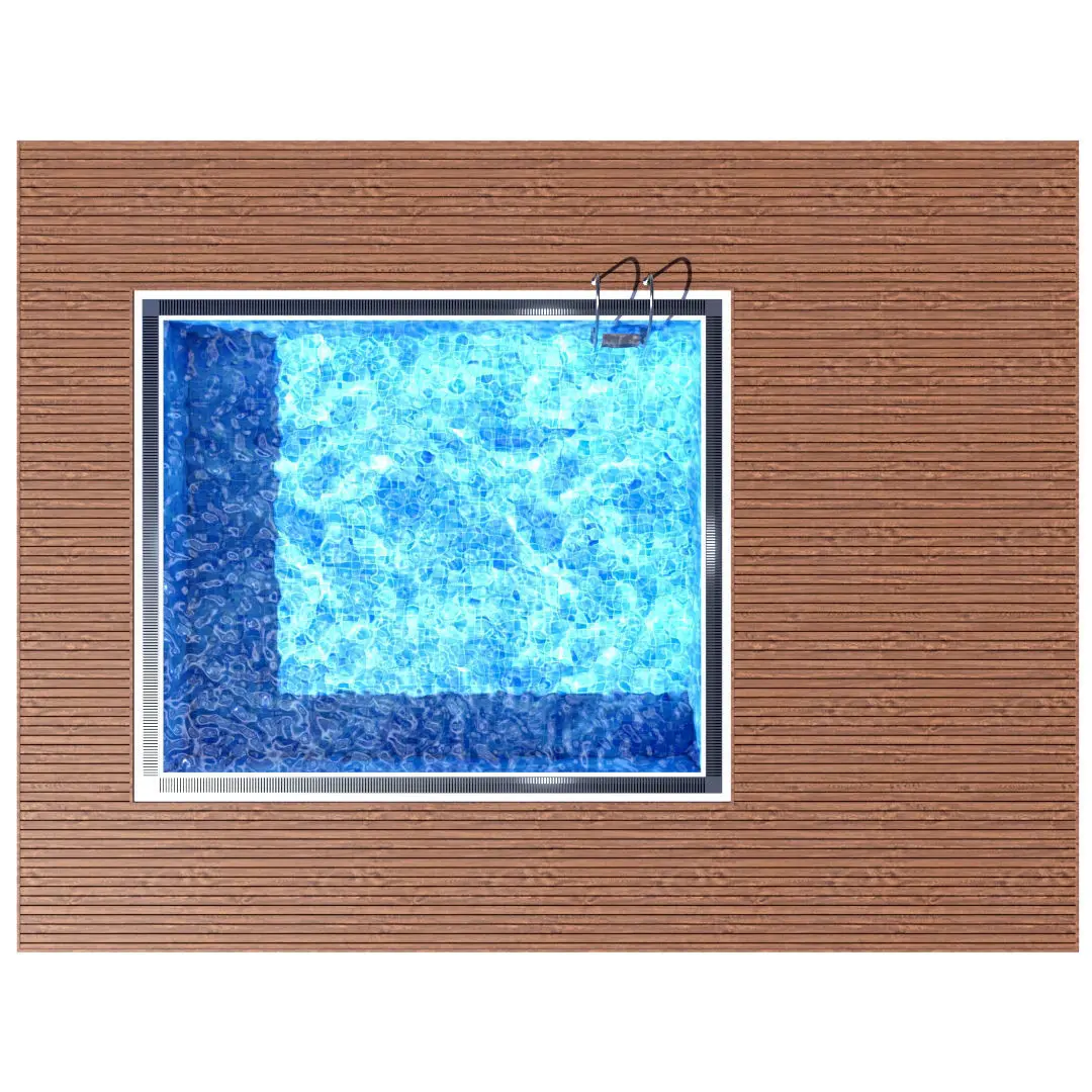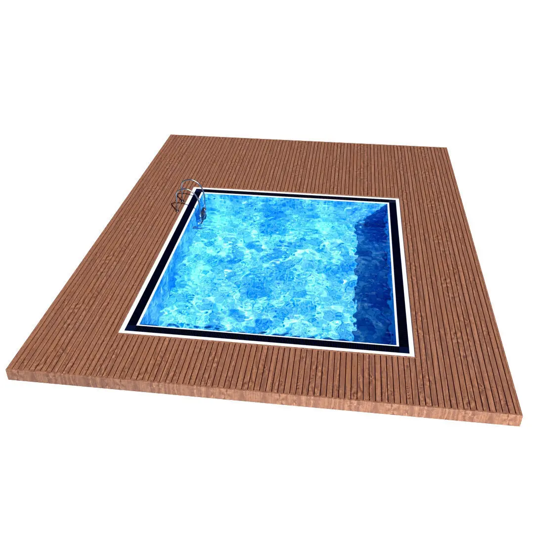 Swimming pool with wooden floor and aluminium ladder