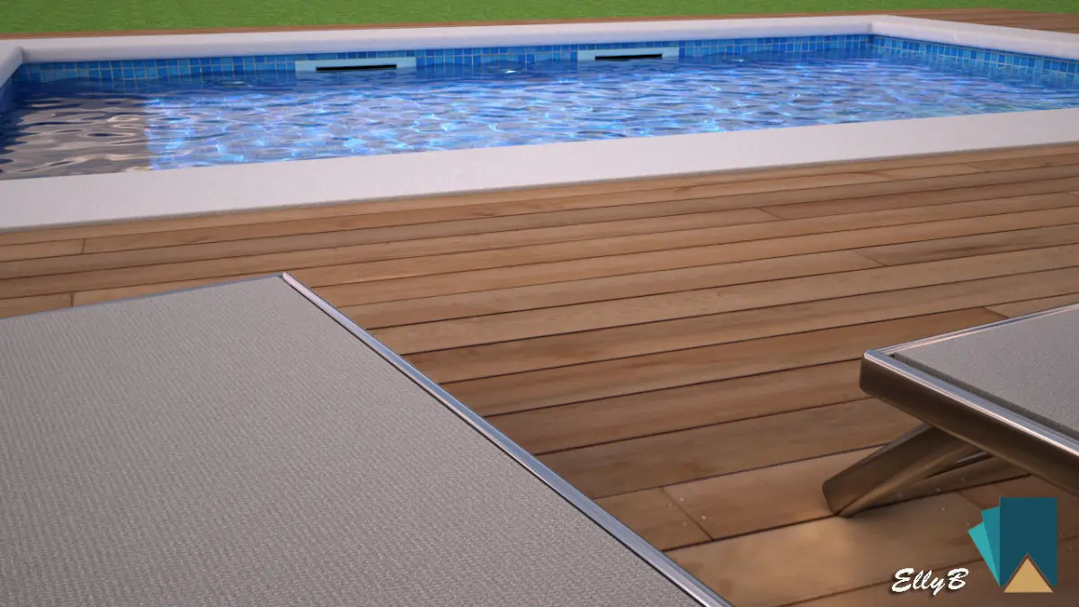 - The pool alone, without the wooden base, sun beds and table, is made up of 4291 polygons and 4349 vertices.