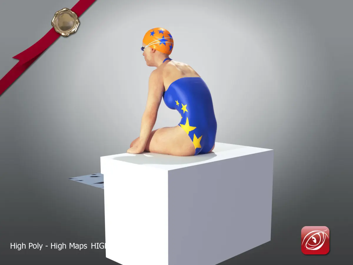 Casual Swimmingpool girl with swimsuit, glasses and cap.Render SSS on GPU withBlender 2.78c or Later version.