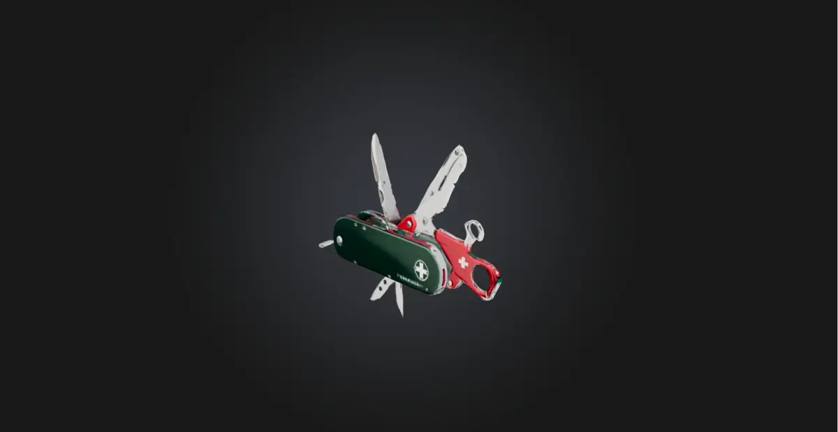 [Lehçe anahtar kelimeler] Szwajcarski scyzoryk, model 3D, multitool, nóż składany, druk 3D, asset do gier, symulacja, FBX, OBJ, STL, GLB, USDZ, BLEND