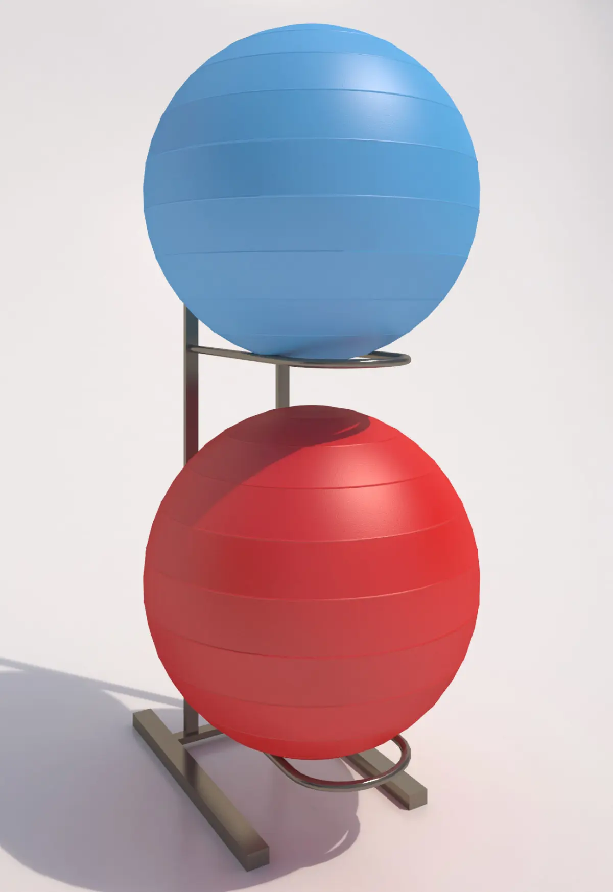-Modeled in 3ds max 2015, rendered in Vray using HDRI Light, HDRI not included.-Interior scene not incldued, walls, floors, other equipment-Included are: (2) Swiss balls, and rack for balls-Model is grouped for easy movement, each item is clearly named, model is placed in 0,0,0: X,Y,Z Axis.-Material has noise in bump to give it a texture like the real swiss ball has.-Ball has ridges part of Sphere under 1 object and 1 edit poly.
