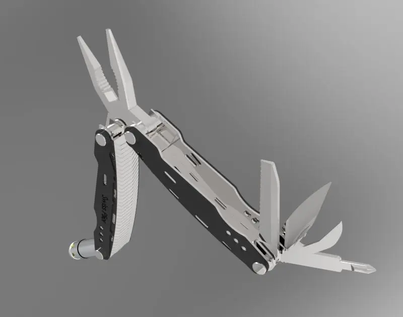 This project is done with SOLIDWORKS software. The Swiss Plier in this project consists of 28 individual parts which are explained alongside their quantity and materials:
