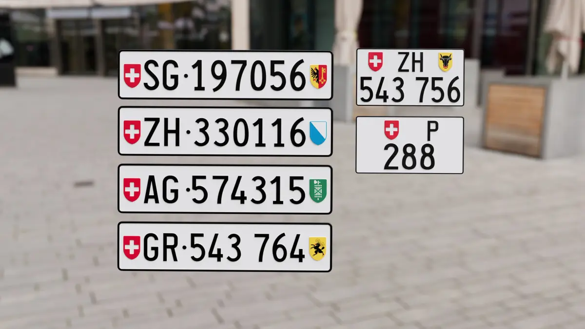Six Swiss car license plates created with meticulous attention to detail, inspired by the most popular Swiss license plates. The plates are crafted with great care, featuring 8K textures.