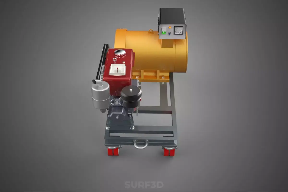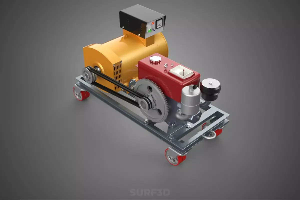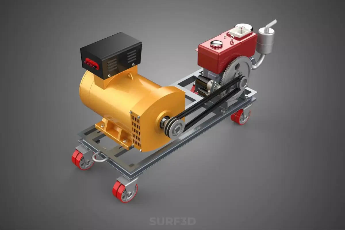 KEYWORDS: Diesel Generator, Genset, Alternator, Swivel Caster, Mobile Power, Synchronous Machine, Prime Mover, Emergency Power, AC Power Generation, Internal Combustion Engine, Portability, Industrial Equipment, Power System, Engine Governor, Electrical Load, Kilovolt-Ampere, Kilowatt, Base Frame, Skid Mount, Brushless Exciter, Sound Attenuation, Maneuverability, Standby Generator, Load Bearing, Torque, Frequency Stability, Control Panel, Compression Ignition, Electromechanical System, Heavy Duty.