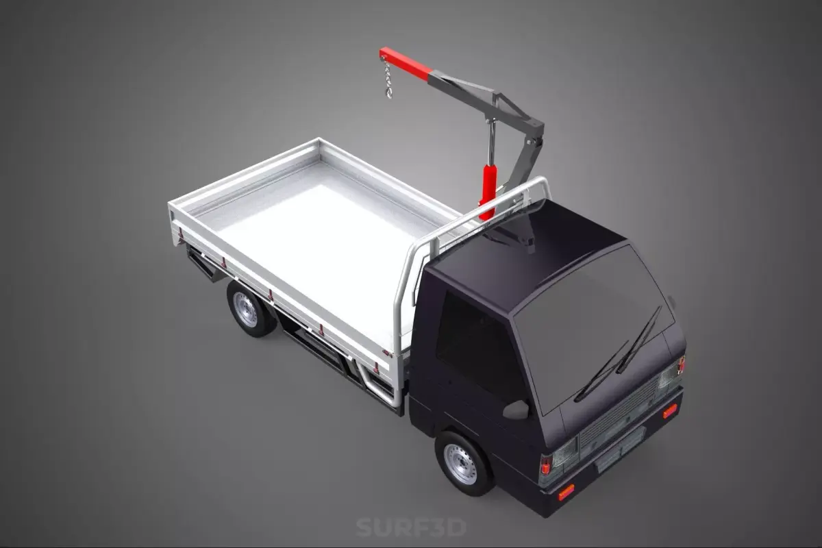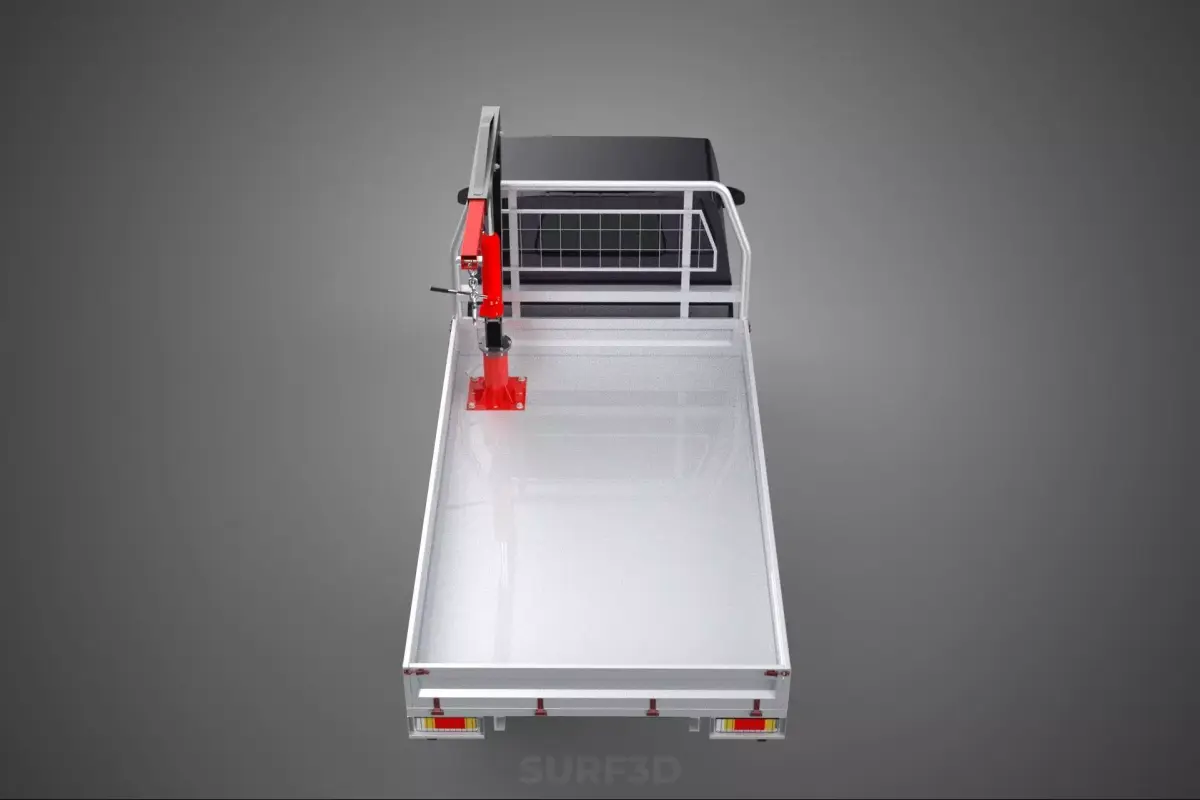 The flatbed truck or specialized pickup serves as the stable platform for both the load and the lifting equipment. The flat, open design of the bed allows for the accommodation of oversized, irregularly shaped, or heavy cargo that might not fit in conventional enclosed transport vehicles. This design facilitates easier loading and unloading from multiple angles, enhancing logistical efficiency.