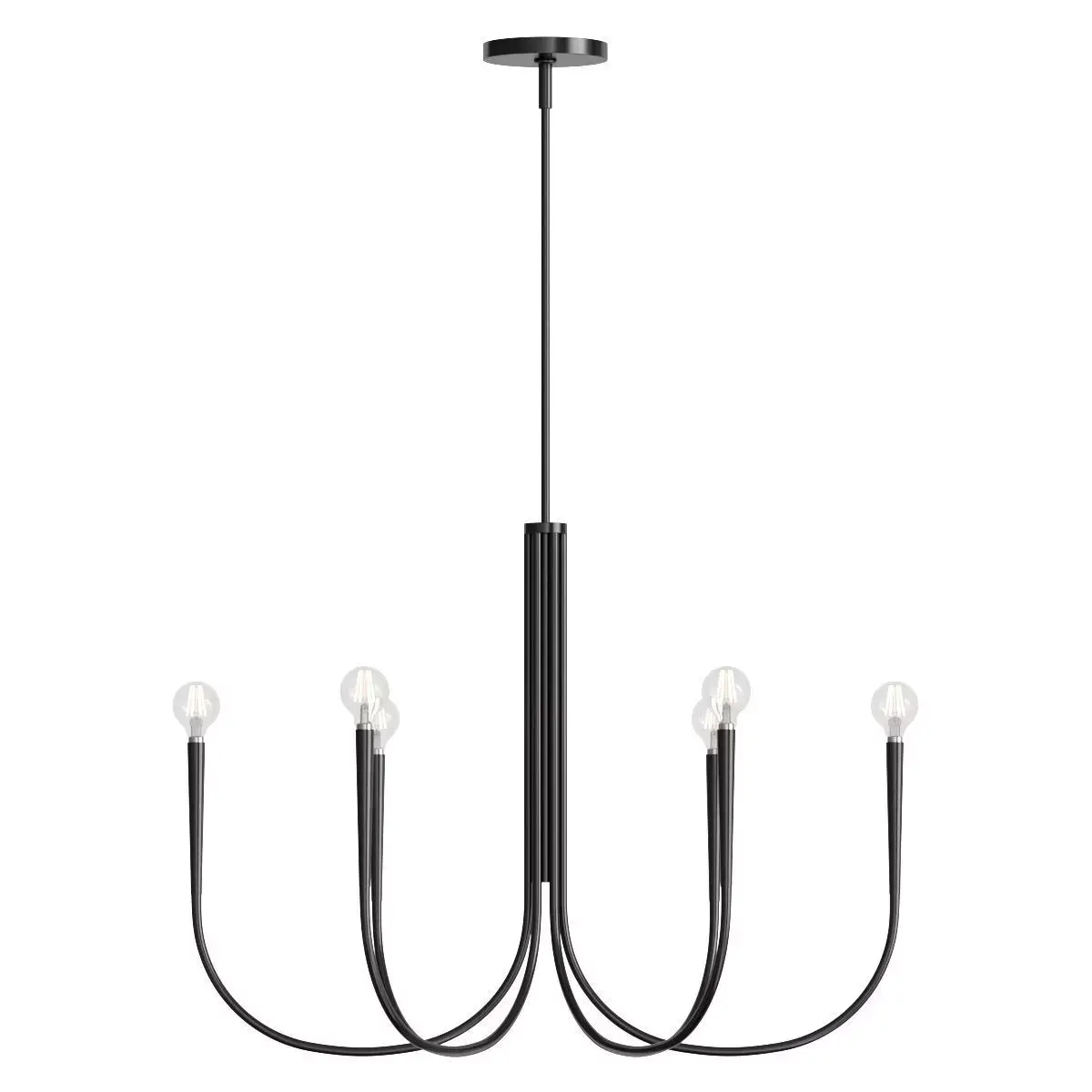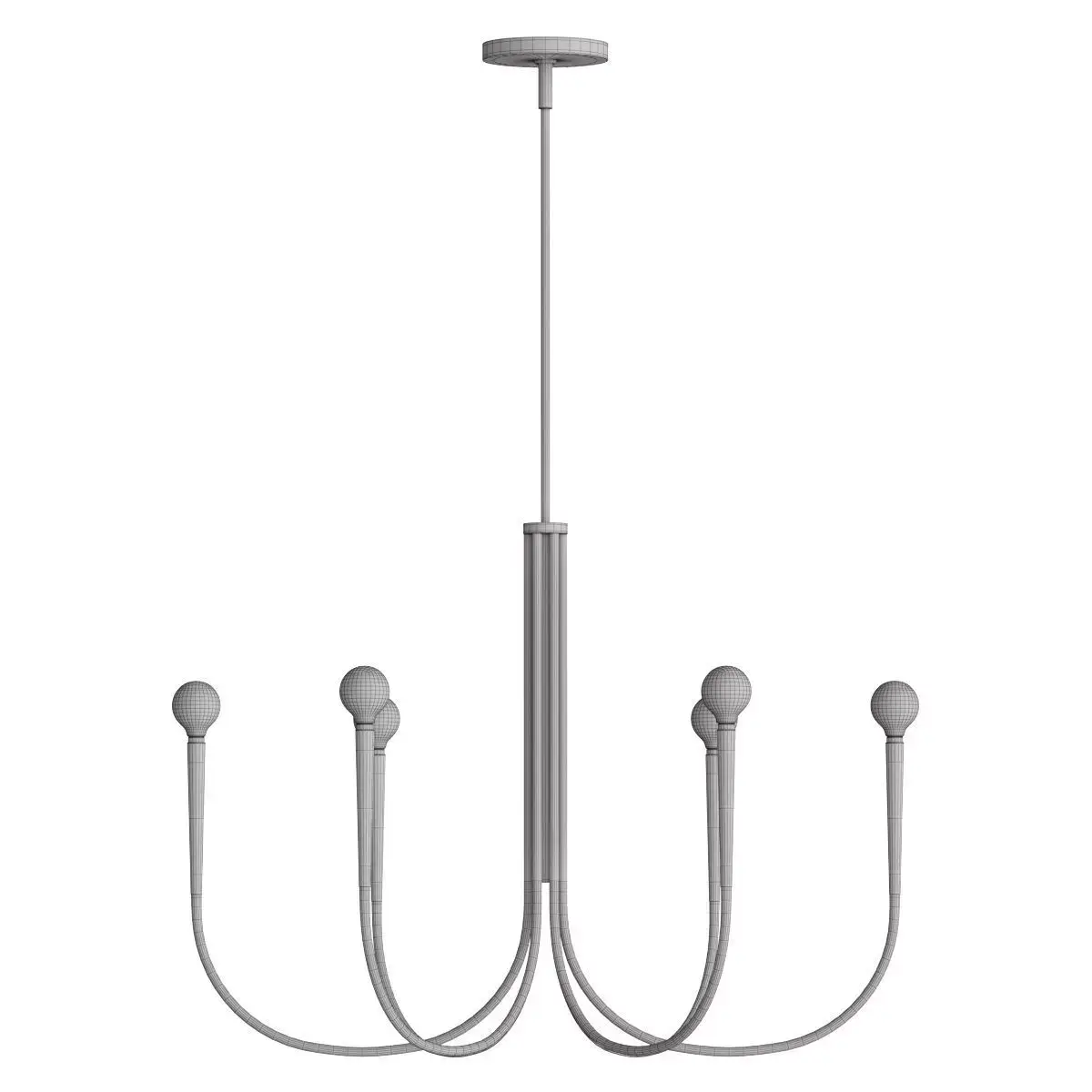 This is a premium 3D model of the Swoop Arm Chandelier, a stunning and highly contemporary lighting fixture. The model accurately captures the lamp's unique design, which features multiple gracefully curved arms that swoop upwards and then extend outward from a central vertical stem. Each arm is tipped with a light source, creating a dynamic and expressive silhouette.