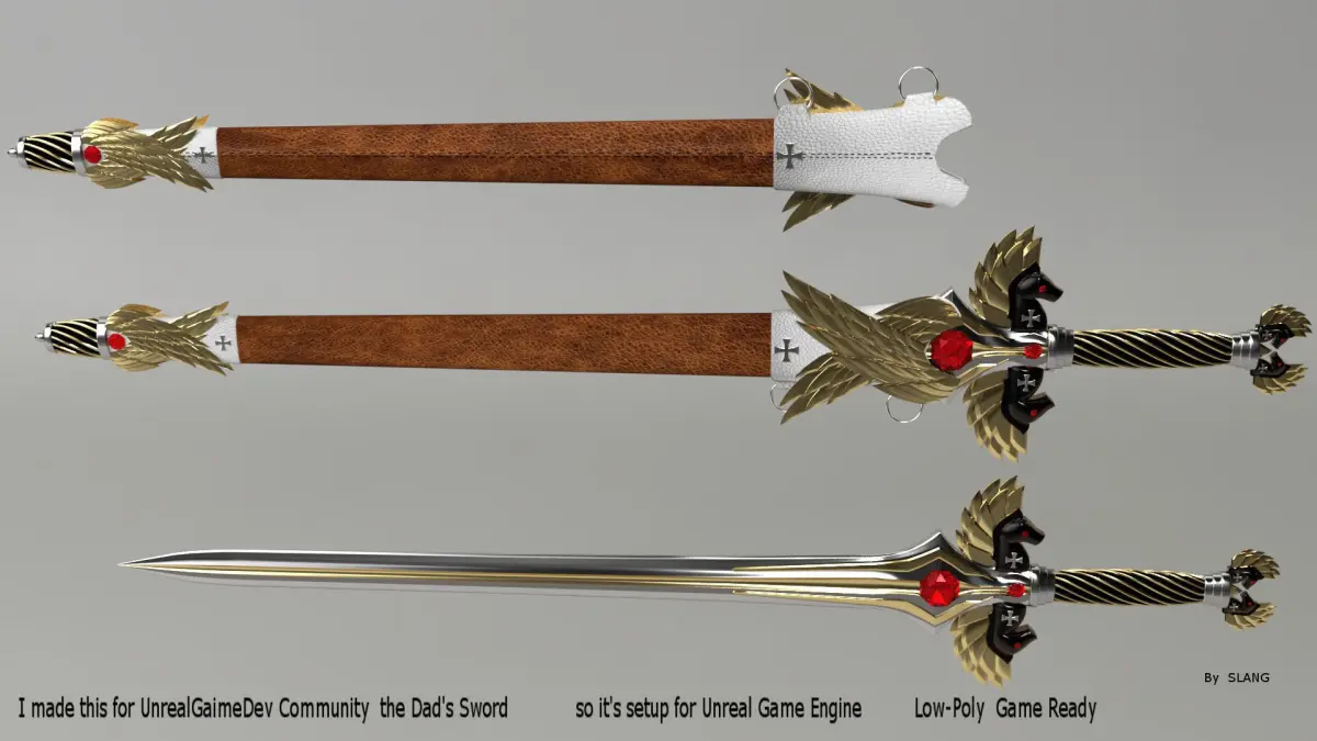 Sword and Sheath Medieval Maltese Knights Cross I Made this for UnrealGaimeDev Community The Dad's Sword so it's setup for Unreal Game Engine Low-Poly Game Ready Should work in other games! you can use it in your games ;)