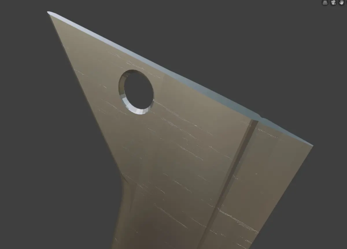 Download contains two models: the default blade and a blad with a chip in case you think that looks cooler. There are also two materials; a scratched silver and a rubber black with some worn patches.