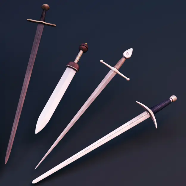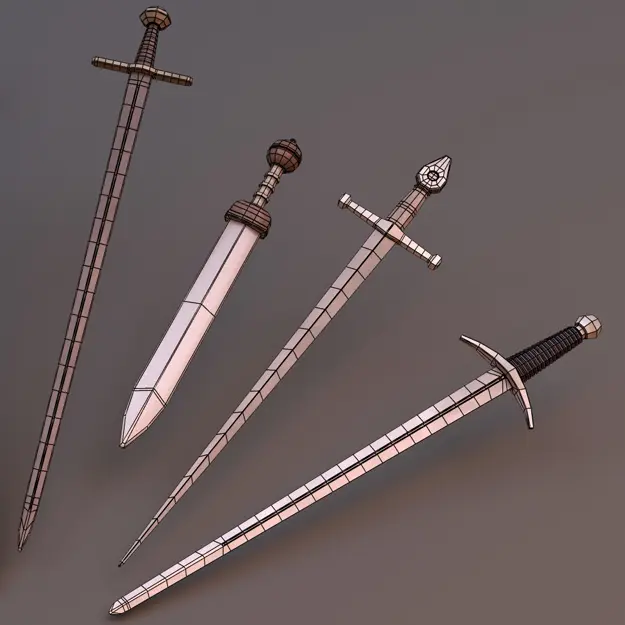 All of theese swords have been modeled to be used as subdivision surface models (approx. 3000 Quads in Subdivision 1) and of course there is a Lowpoly-Sword-version (approx 250 Polys) for eachone.