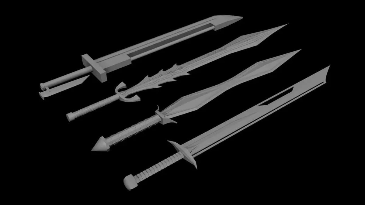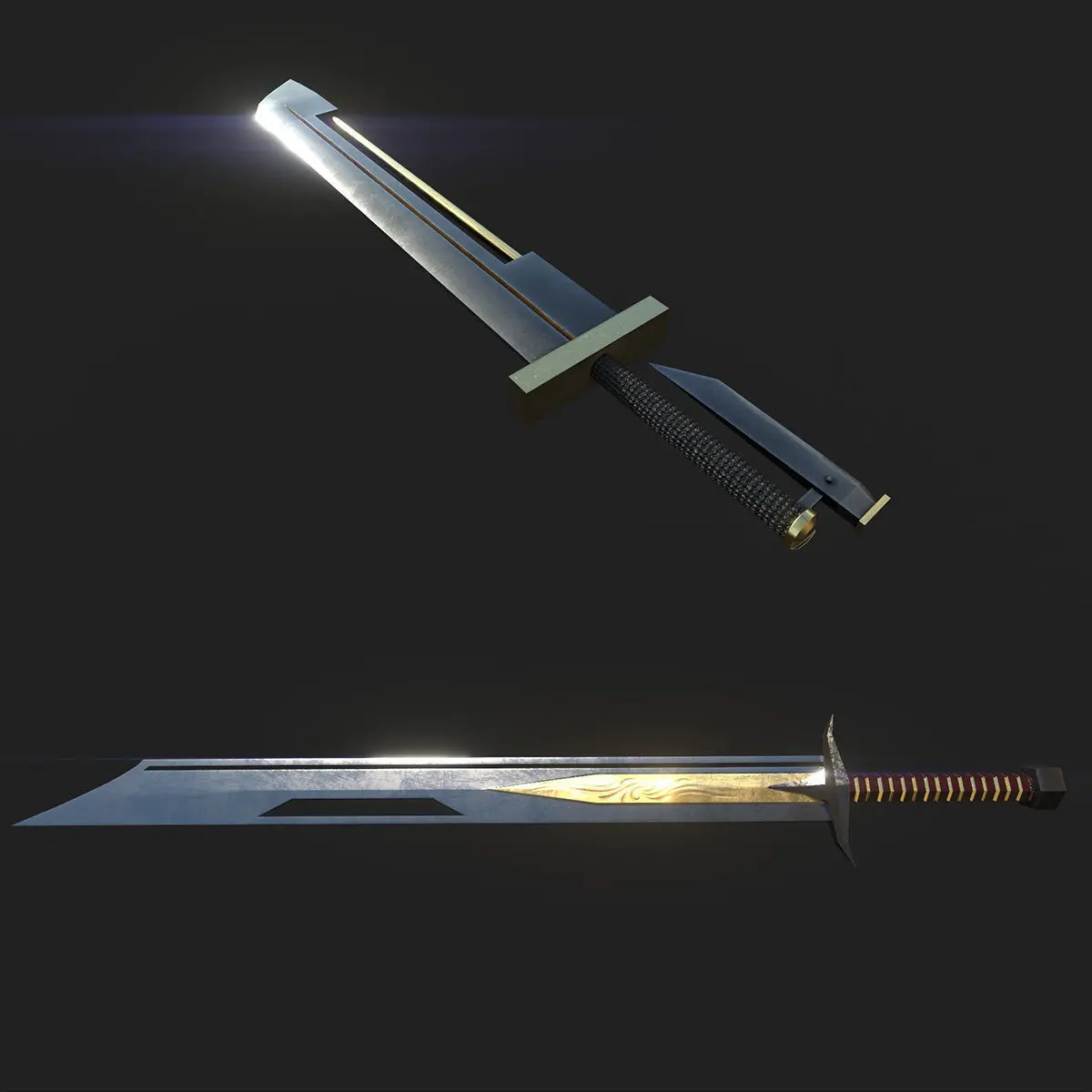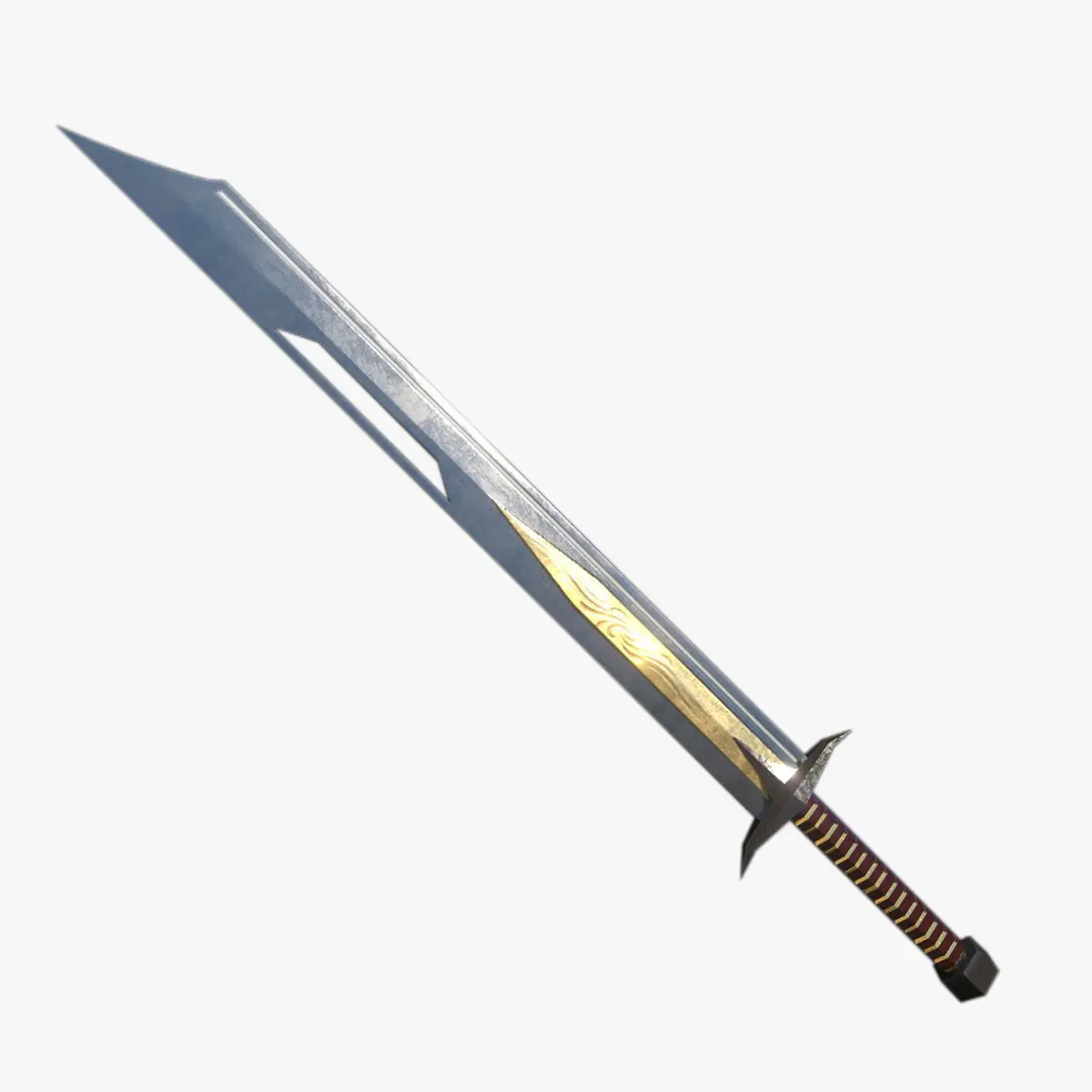 Detailed 3d model of a quality handmade Damascus two-handed sword.Features: