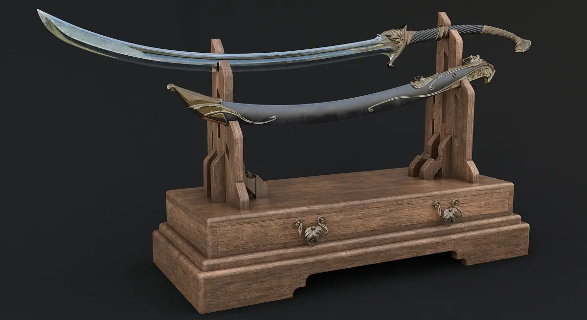 Sword of Ecthelion - Gatekeepers hidden city of Gondolin (on a stand) I have optimized and retextured the model. - Modeled in 3dMax2016, but there is 3dMax file in version Max2014. - There are *.fbx, *.obj, *max2014, max2016 and textures files. - There are two variants of textures of hendle and sheath. - There are two variants of sword stands. - All parts and models have unwrap. - All parts and models are redy to TurboSmooth. - All parts and materials are logically named. - Preview image rendered using Vray 3.40.01. - Ready for rendering.