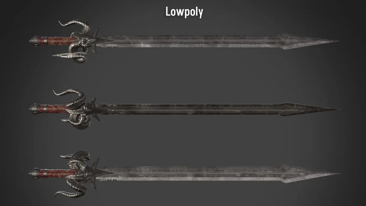 Included:Extralowpoly Sword - 4,080 vertsLowpoly Sword - 13,844 vertsHighpoly Sword - 467,201verts