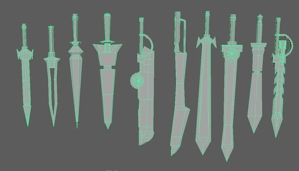 10 models of swords, a set of weapons. no texture, no ju, ready for your painting.