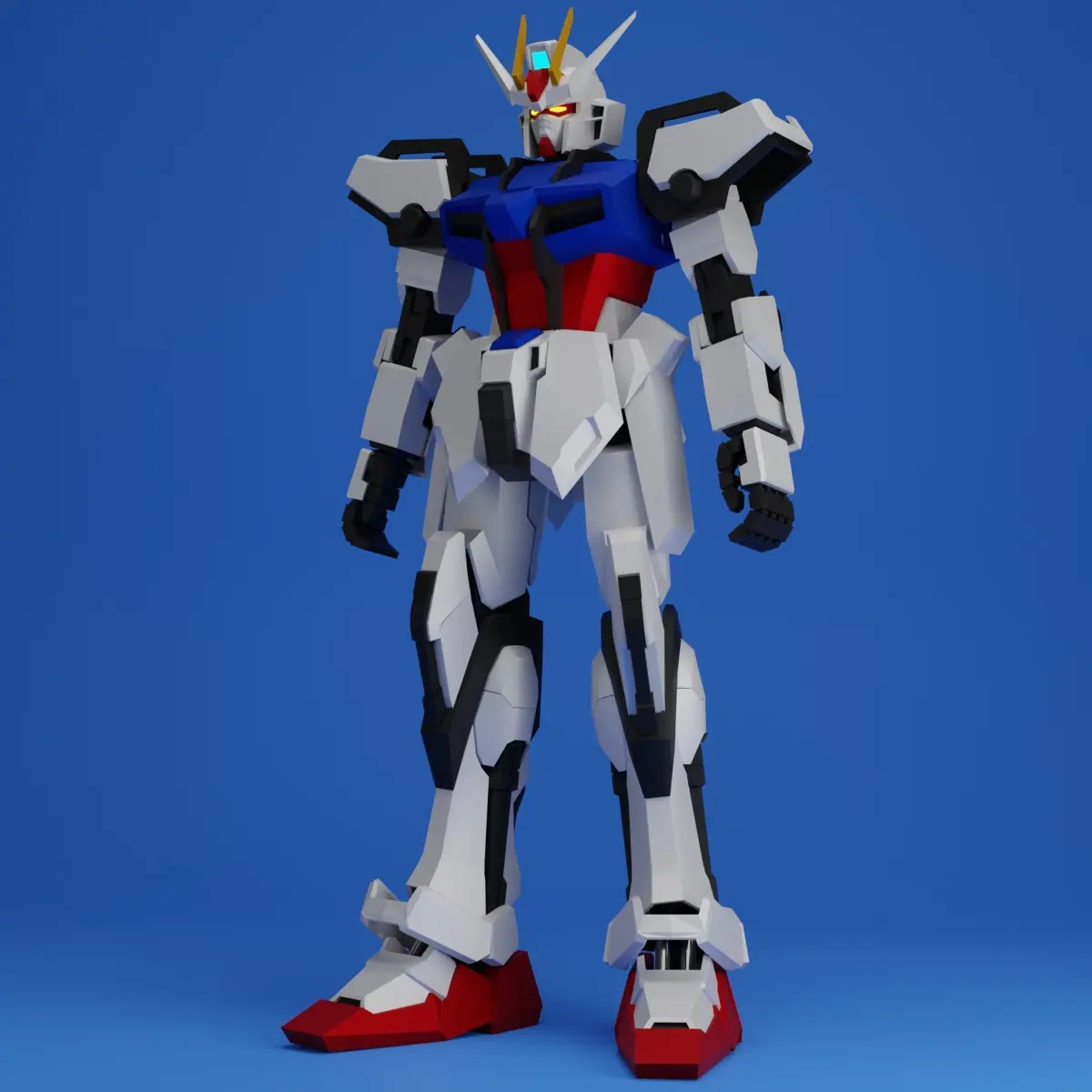 Simple 3d model Gundam, The GAT-X105 Strike Gundam is a prototype multi-mode mobile suit introduced in the anime Mobile Suit Gundam SEED. Its primary pilot was Kira Yamato before it was passed down to former mobile armor ace pilot, Mu La Flaga. Sword Stike Gundam.